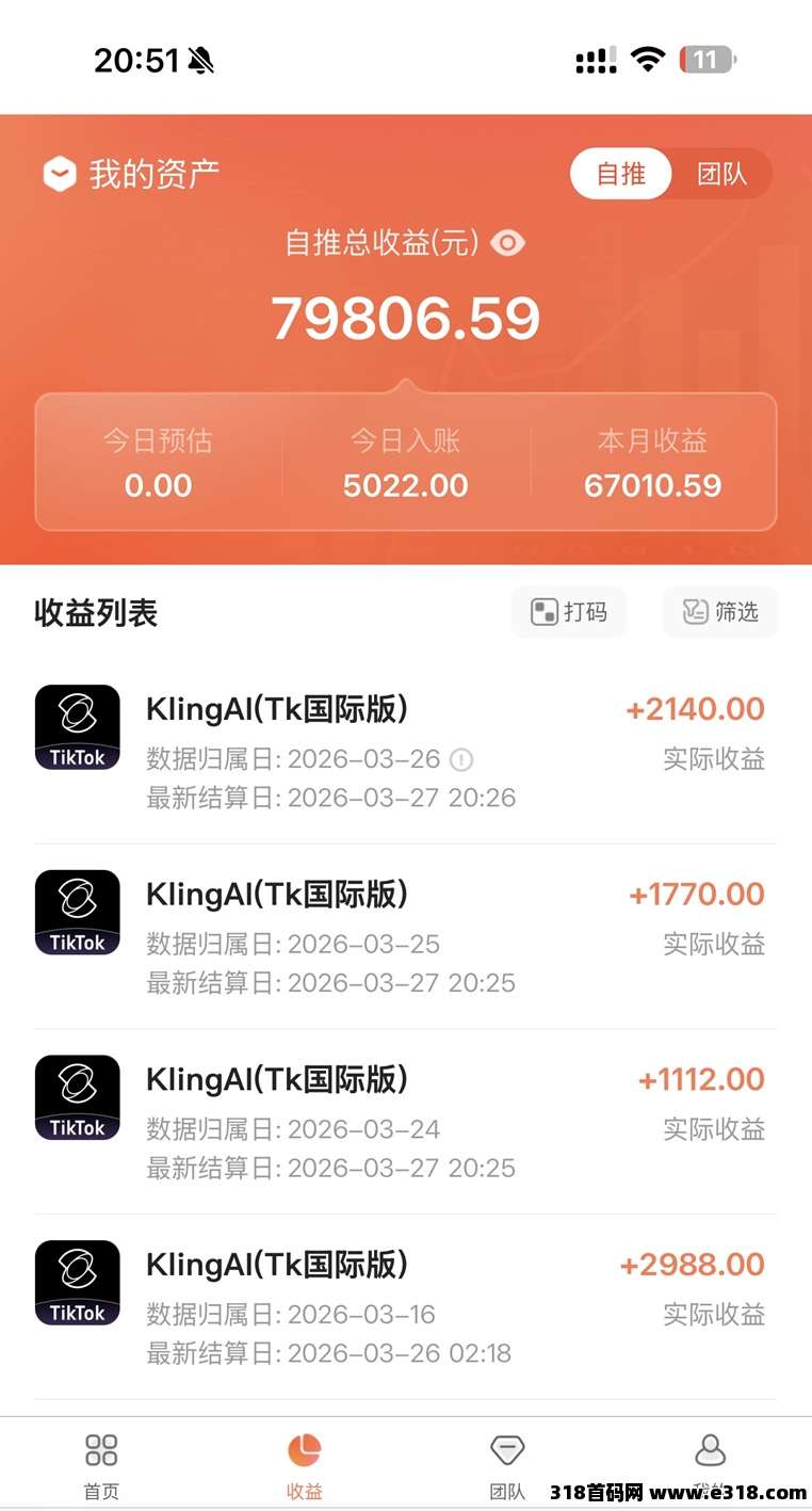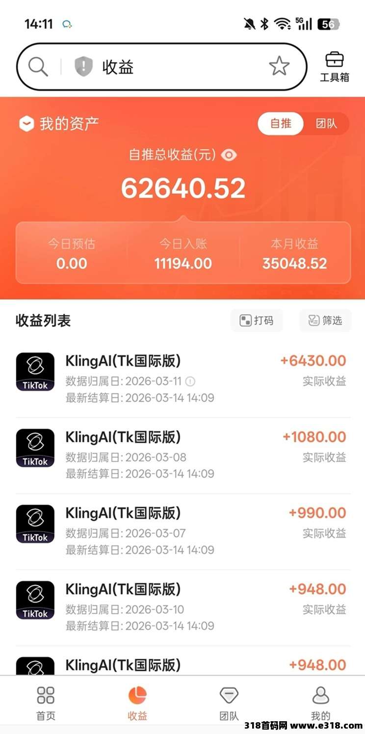 尤其是领推上线的可灵Kling国际版,很多人一天收益都干到了四五位数,国际版国内版都是可以推广的,免费注册领推就可以开通领推推广权限。