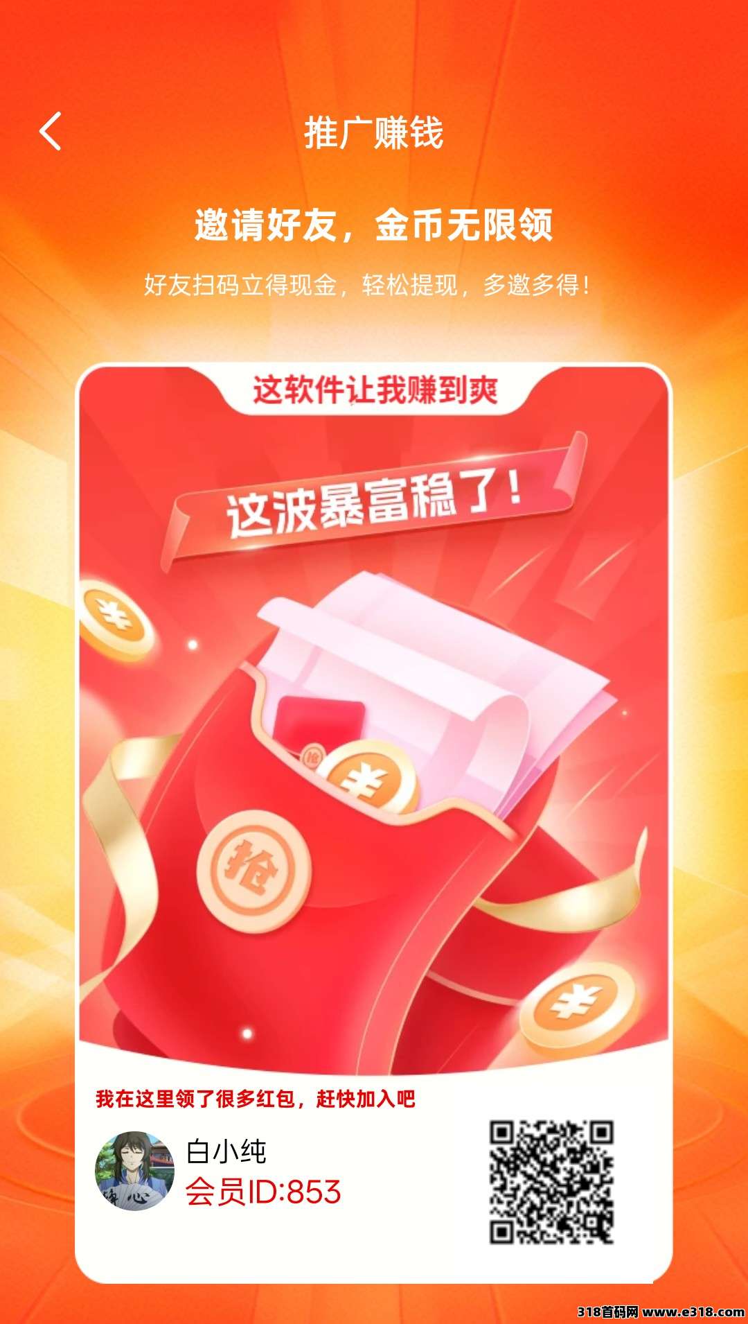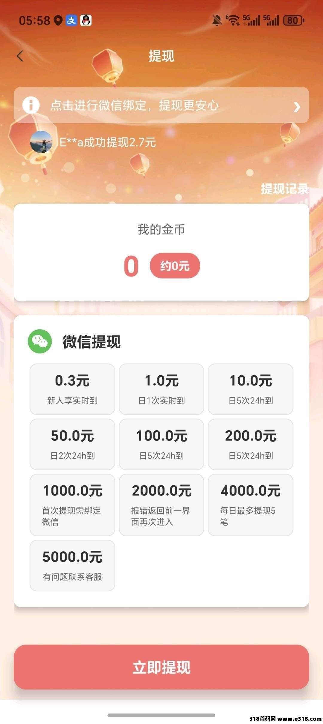 金币10000=1元,满0.3即可提现,推广有收益,