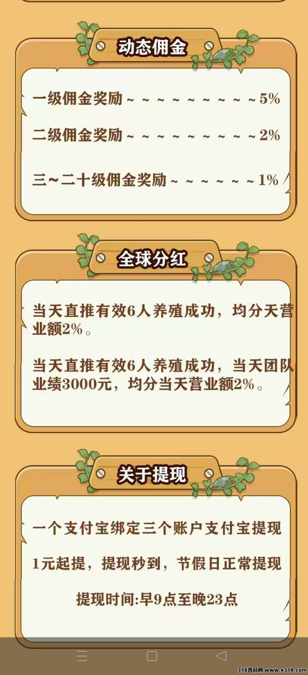 好运养猪场,纯零撸可玩,每天点一下签到3-5米,一米起提秒到,直推一人有效奖励7.5米,一代5%,2代2%,3-15代1%,每人同ip可以撸3个号抓住机会哦!