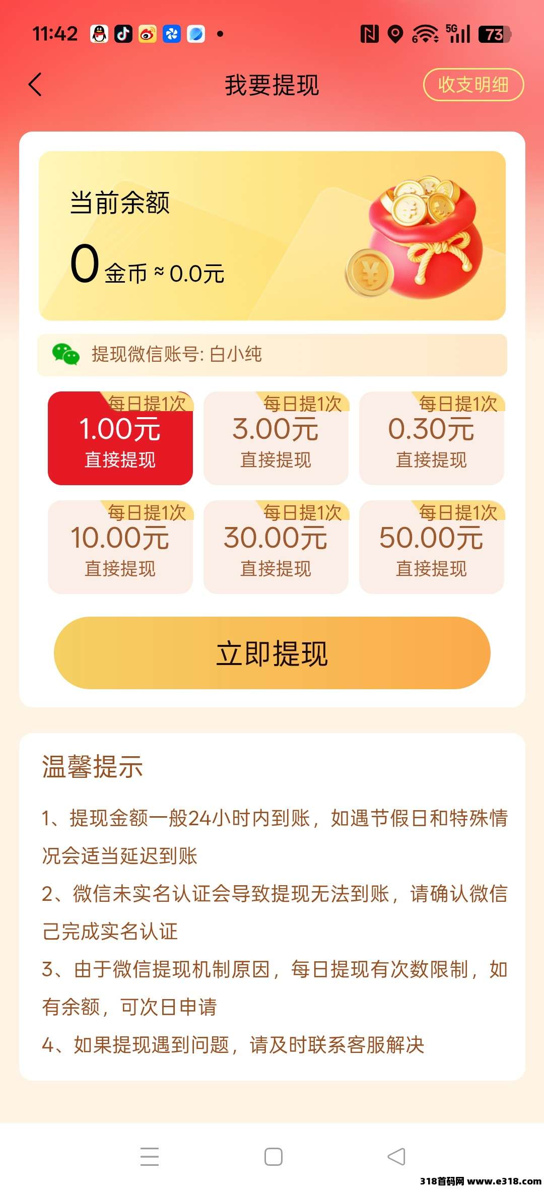 满0.3元即可提现,邀请有收益