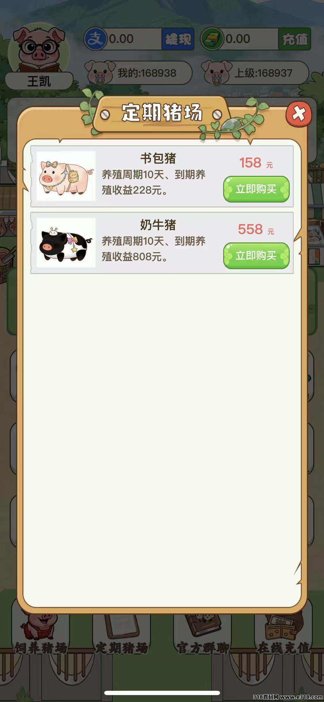 首码预热内排好运养猪场4月23号上线送999元,全新模式每天0点收益,每天可提现收益,本金自由到期可退!注册激活有扶持