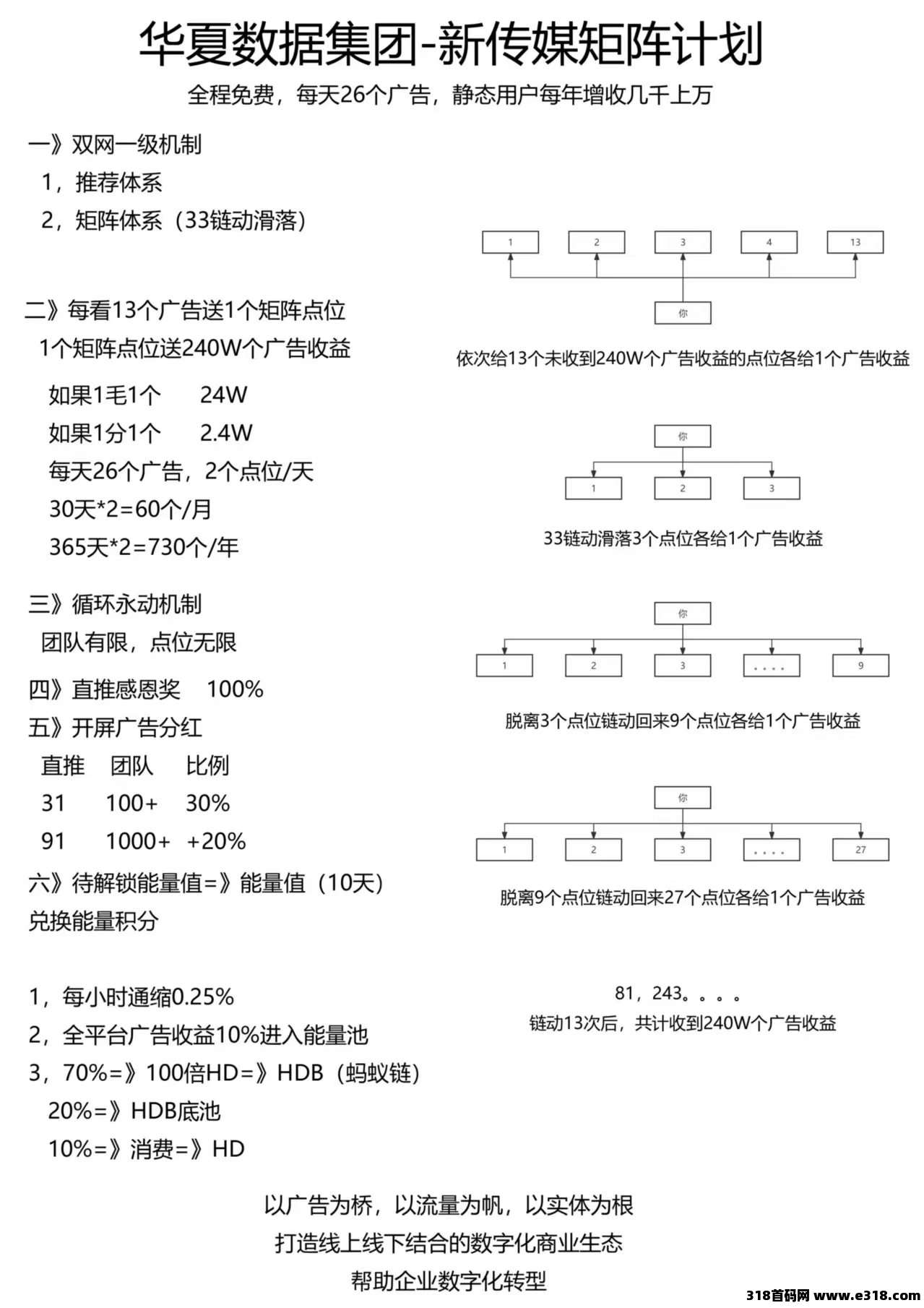 二、每看13个广告赠1个矩阵点位,赠140万个产告收益