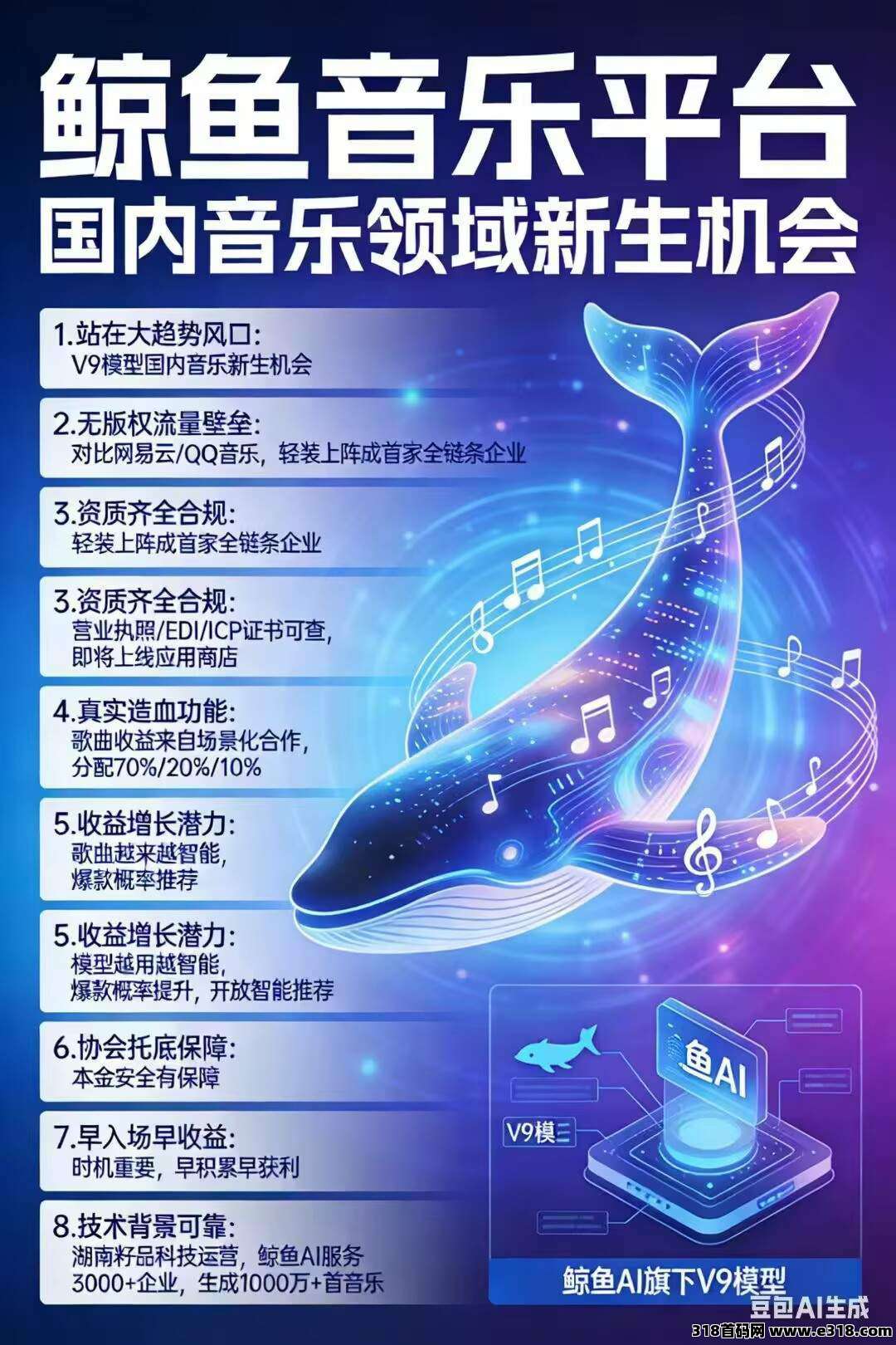 【**音乐】用AI一键生成创作歌曲发布赚钱,公司扶持开工作室,办音乐节,纯绿色音乐产业,有人听就有收益,收益持续到账,免费发一个月,每天一首歌,出现爆款以后,一首歌就可以挣几万到几十万,抖音上有个音乐人,一首歌就卖了5万,一个月后想继续发音乐的,可以投1680元来开通权益,或者等你的音乐赚钱后拿1680元来开通权益,随时可以退款,现在可以帮你垫资,只要680元,开了第2天发的音乐就有十几元收益,每天一直有收益,推广也有团队收益,没投资的也可以推广,后期可以拿团队奖励,公司会有扶持,在团队长所在的地区开设工作室,举办音乐节