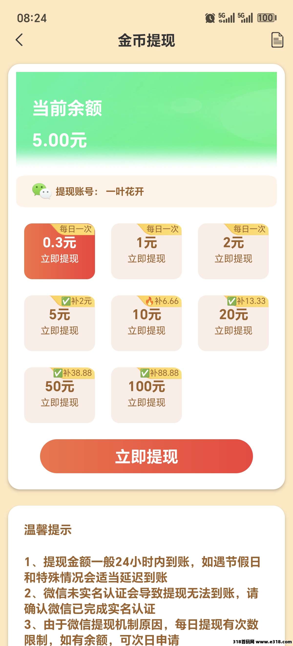 提现都是秒到0.3起,小红包不要开,开几个大的,单人0撸一天就够一顿饭