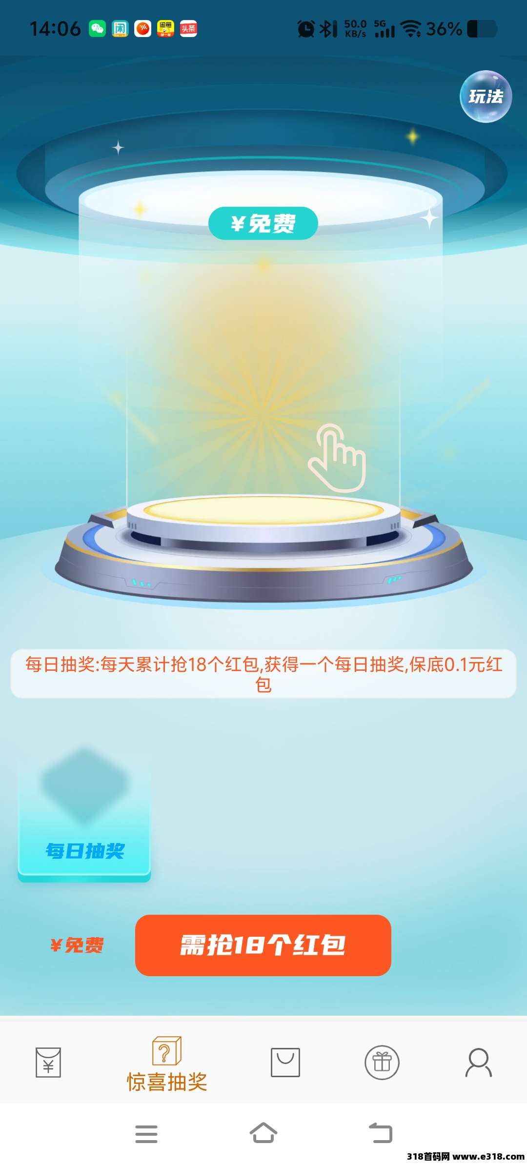 额外抽奖机制:每日累计抢18个红包,可获得1次抽奖机会,抽奖保底0.1元红包。