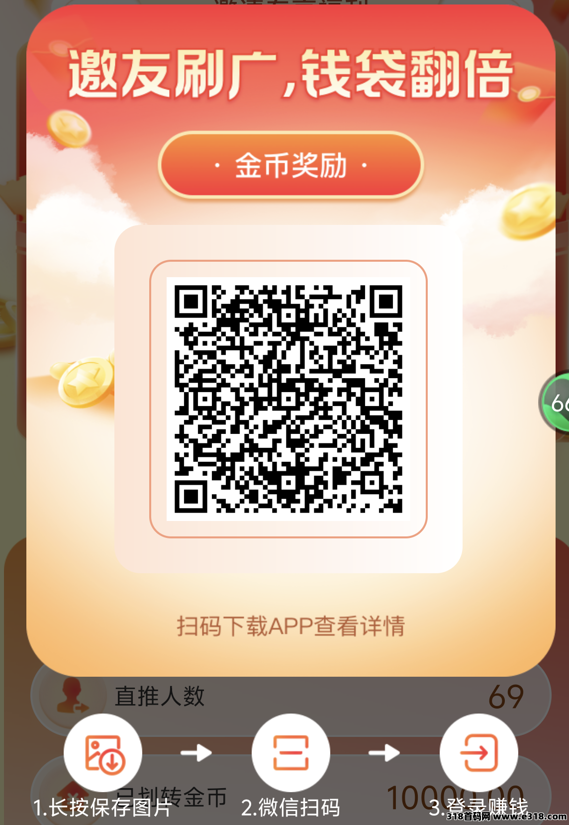 多玩法赚:拉新双向得金币,签到最高3888金币,看广告最高2666金币,每月25日**超573万。