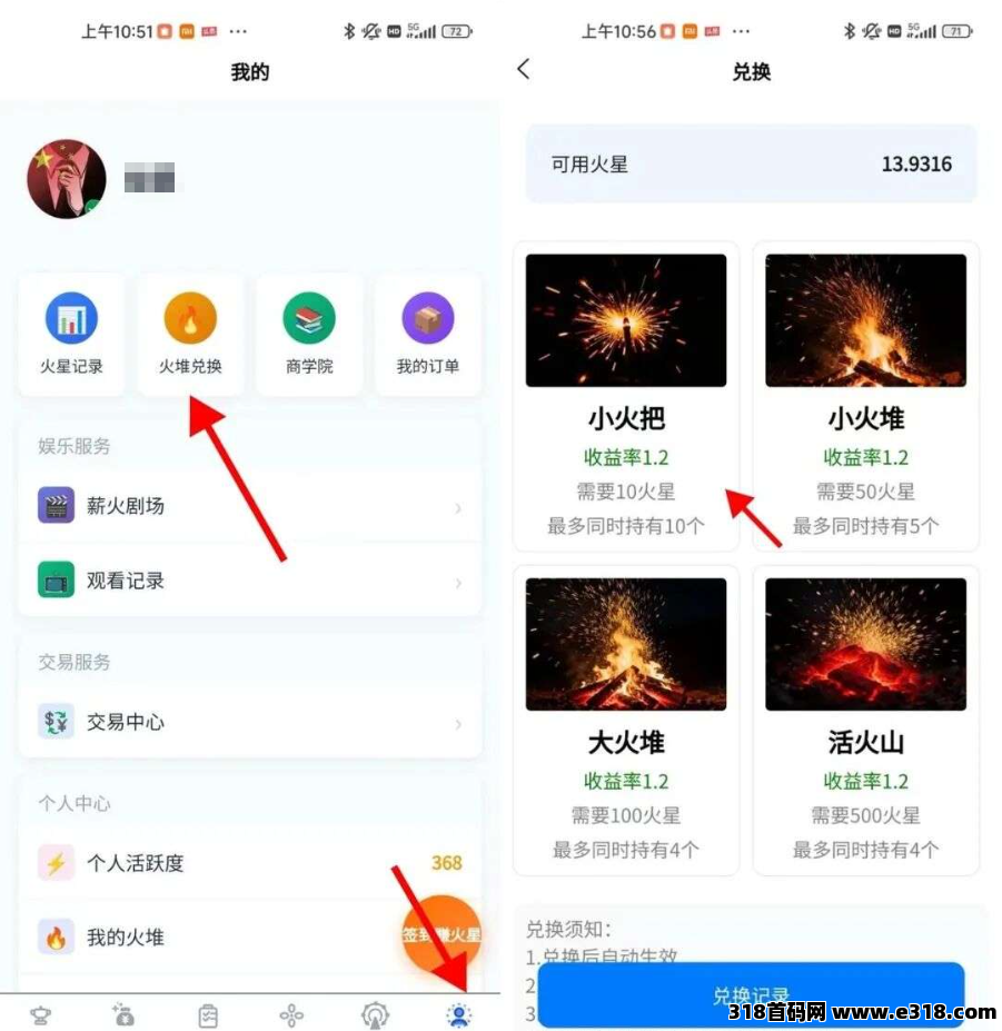 2、新用户有新手火把,25天产出10个,直接兑换小火把,小火把每天收益0.4个加上新手火把0.4个每日收益会变成0.8个,持续5天30 天总产出12+2=14乘以11=154米