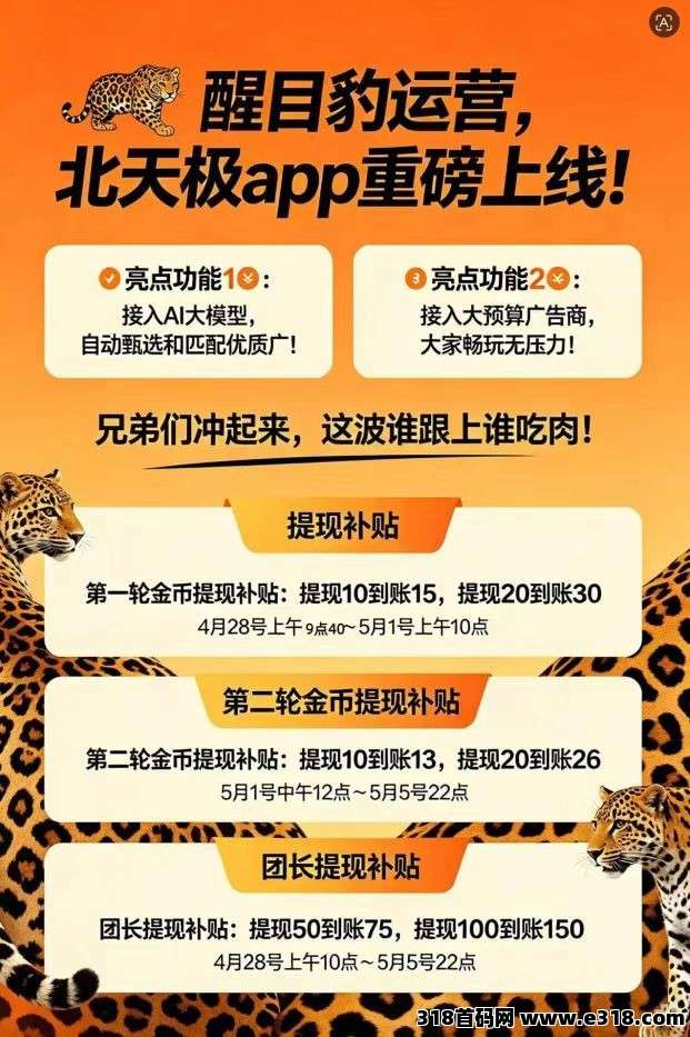 (北天极)首码,零撸广告赚,保底收益高,放水中,新品上线,补贴福利+50%开团25%贡献