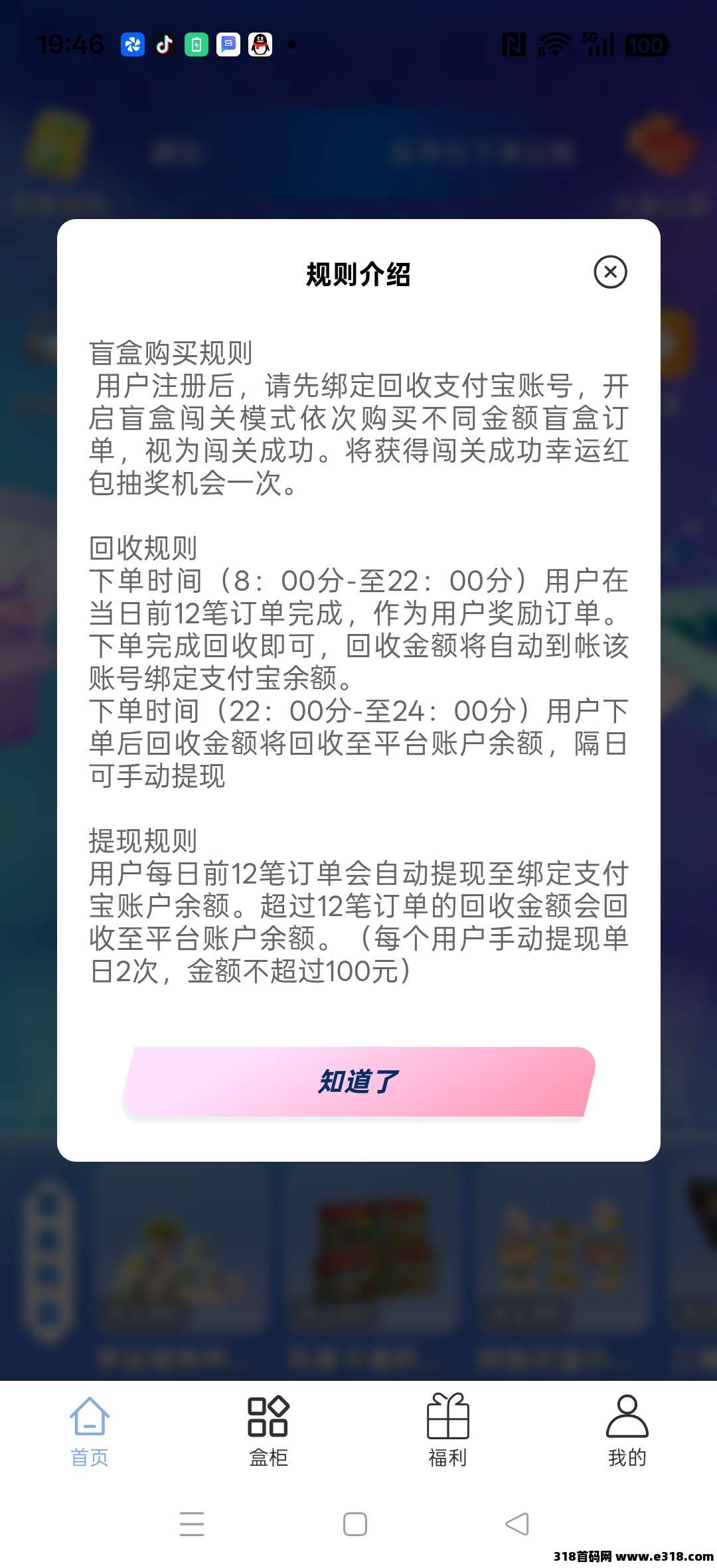 【斯耀盲盒】零撸保底盲盒,新品上线,拉新奖励日入几十米,大致玩法:每天支付12次然后每