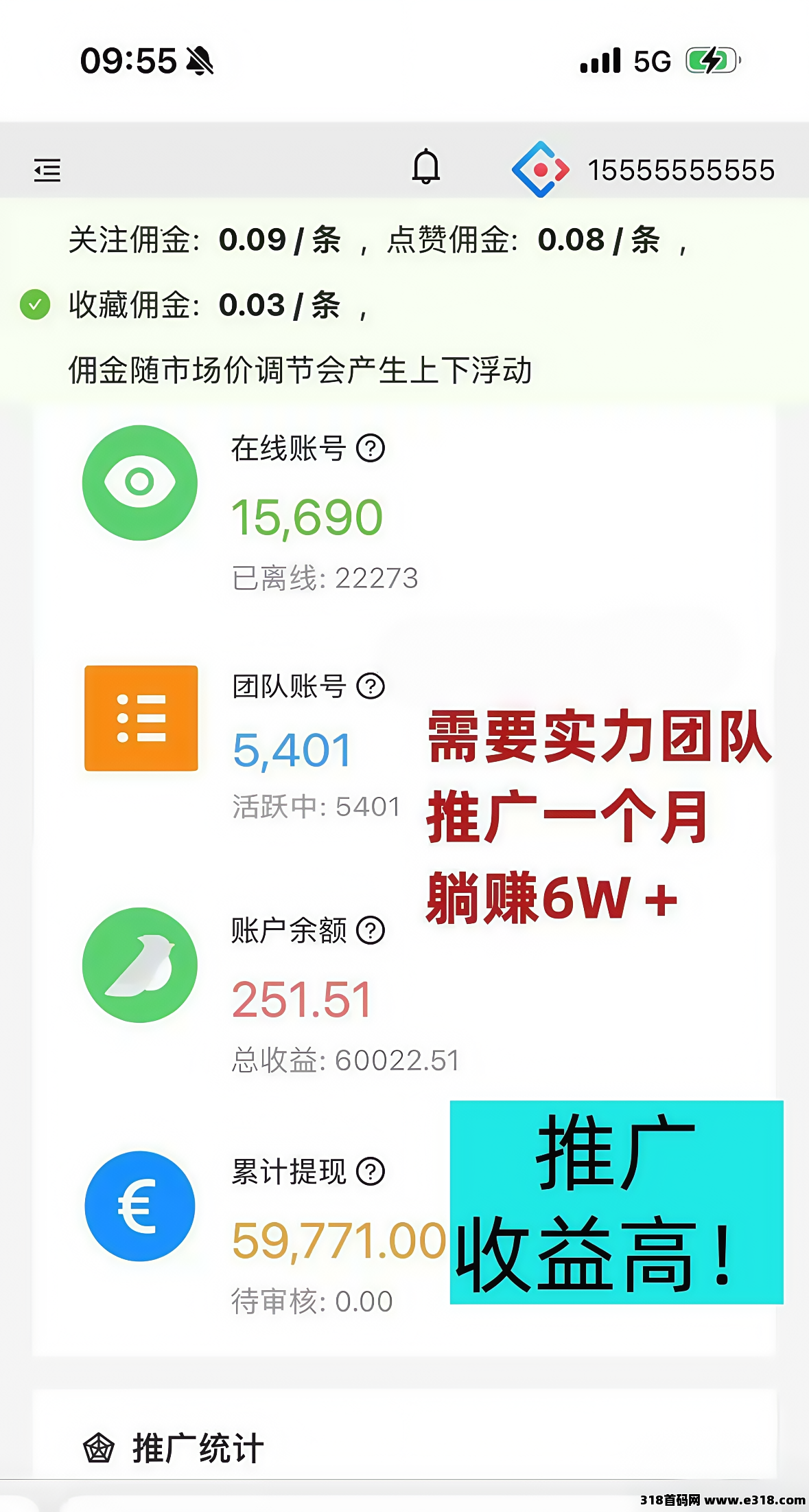 推广收益无线代获得整个团队挂机收益10%