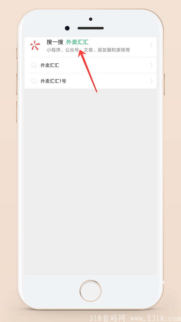 打开微信搜索框,点击公众号,输入“外卖汇汇”点击搜索