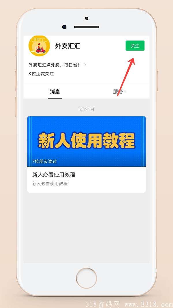 点击关注外卖汇汇公众号进入