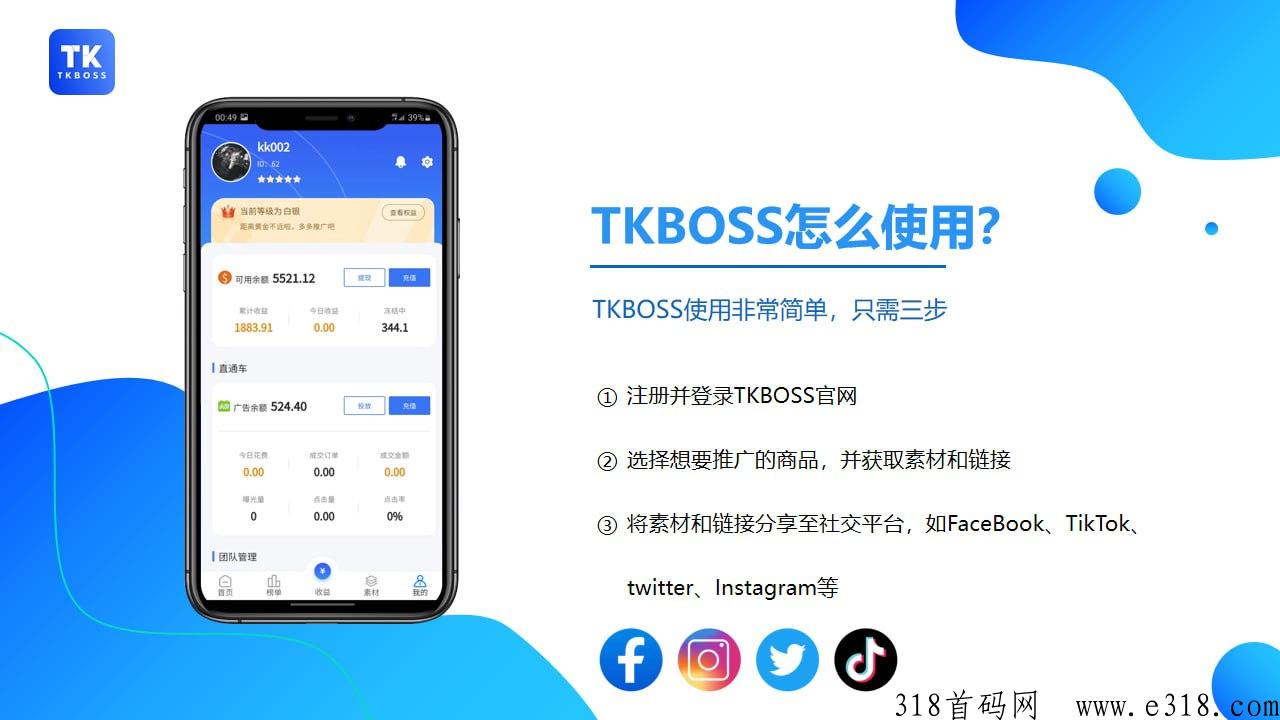 TK Boss的工作模式简单而高效。您只需将产品链接投放平台直通车推广出去,每当有人通过您的链接完成购买,您就能轻松获得佣 金。无论您是社交媒体新手还是经验丰富的推广者,TK Boss都能帮助您轻松实现收益。