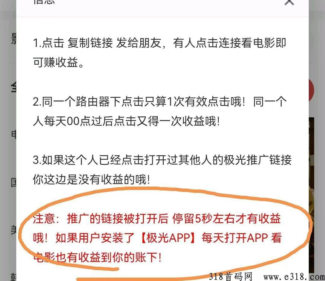 你把好看的电影、电视剧……等分享了出去,别人点进去和你一起看了,或者是别人点进去看其它的影视剧集了,你都能够有收益入账!别人每一次点击,你就能有0.045米!