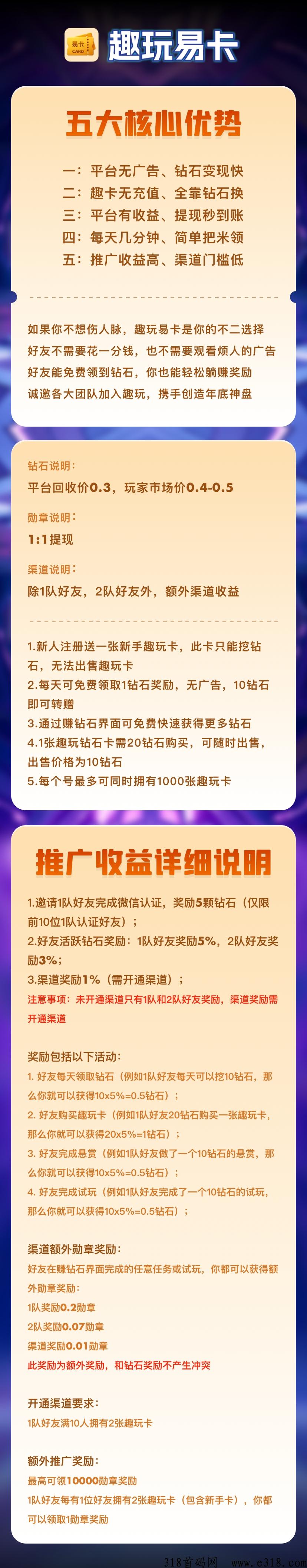 我们的不同处:不需要充值买卡片,趣玩免费送,复投只需钻石即可,人人可玩,门槛低,钻石有保底回收机制,趣卡有随时变现机制