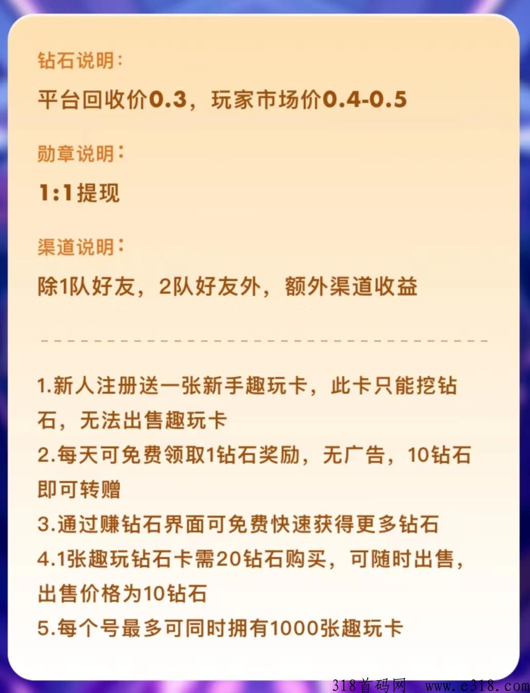 也可以弄卡,提高产量,卡越多产量越高,平台兜底钻石,趁早推广高收益。