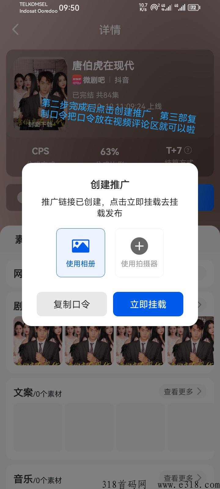 抖音挂载小程序:账号需要千粉,从麻雀app小程序推广计划进入挂载,账号没有千粉的挂载九天,画屏,剧宝口令