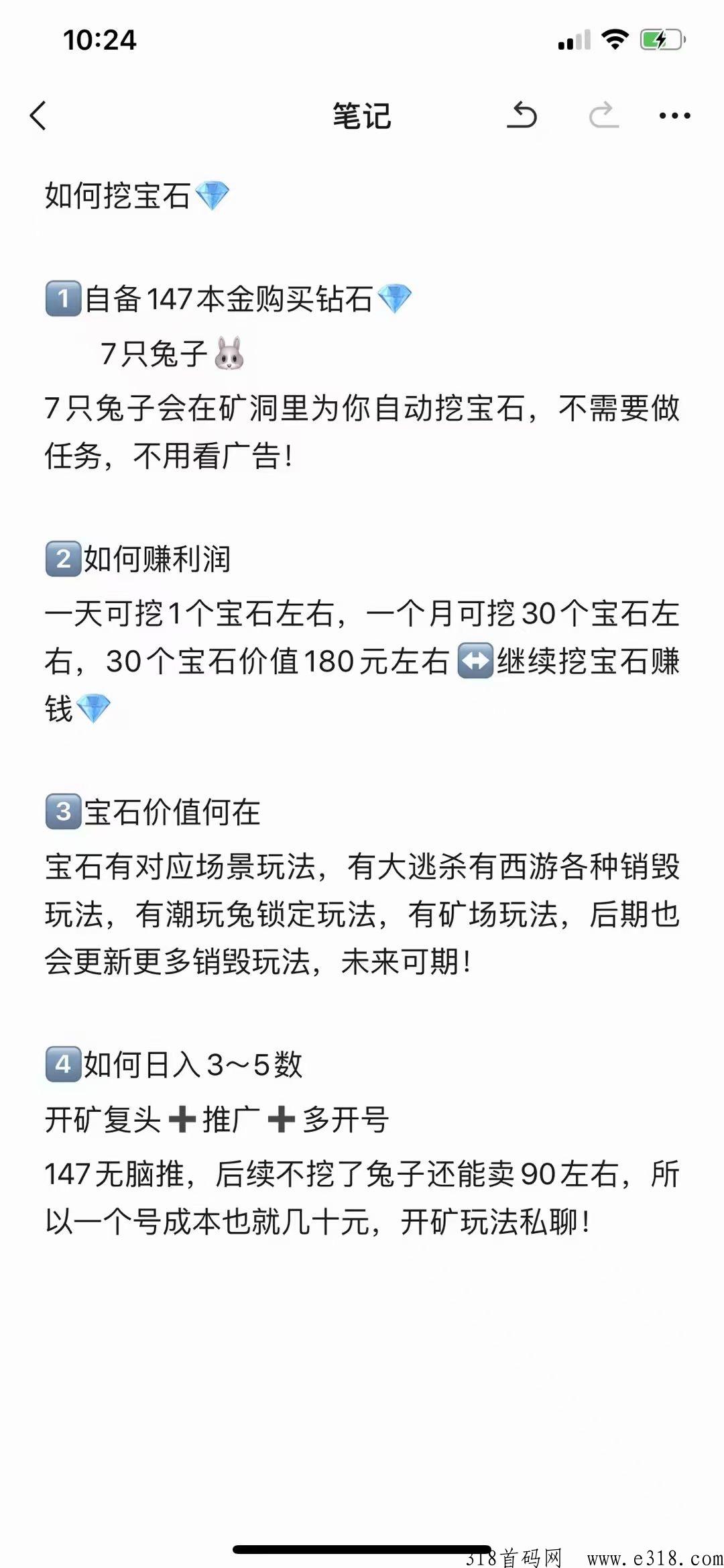 第一种:开号挖宝石,多号多赚