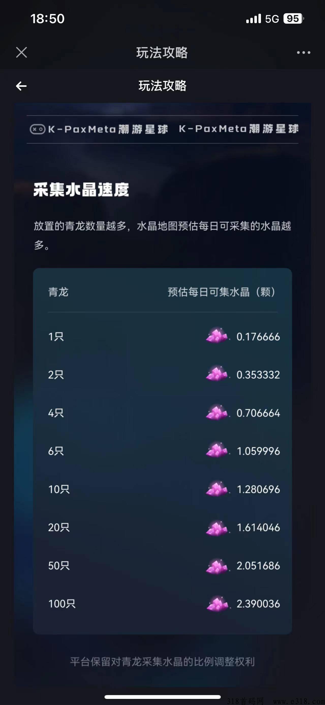 潮游星球,三张龙卡59.7,我扶持20!你本金39.7!一天0.53个水晶,6.5米秒出!12天回本!后面开6卡,我再扶持你15,做的来!