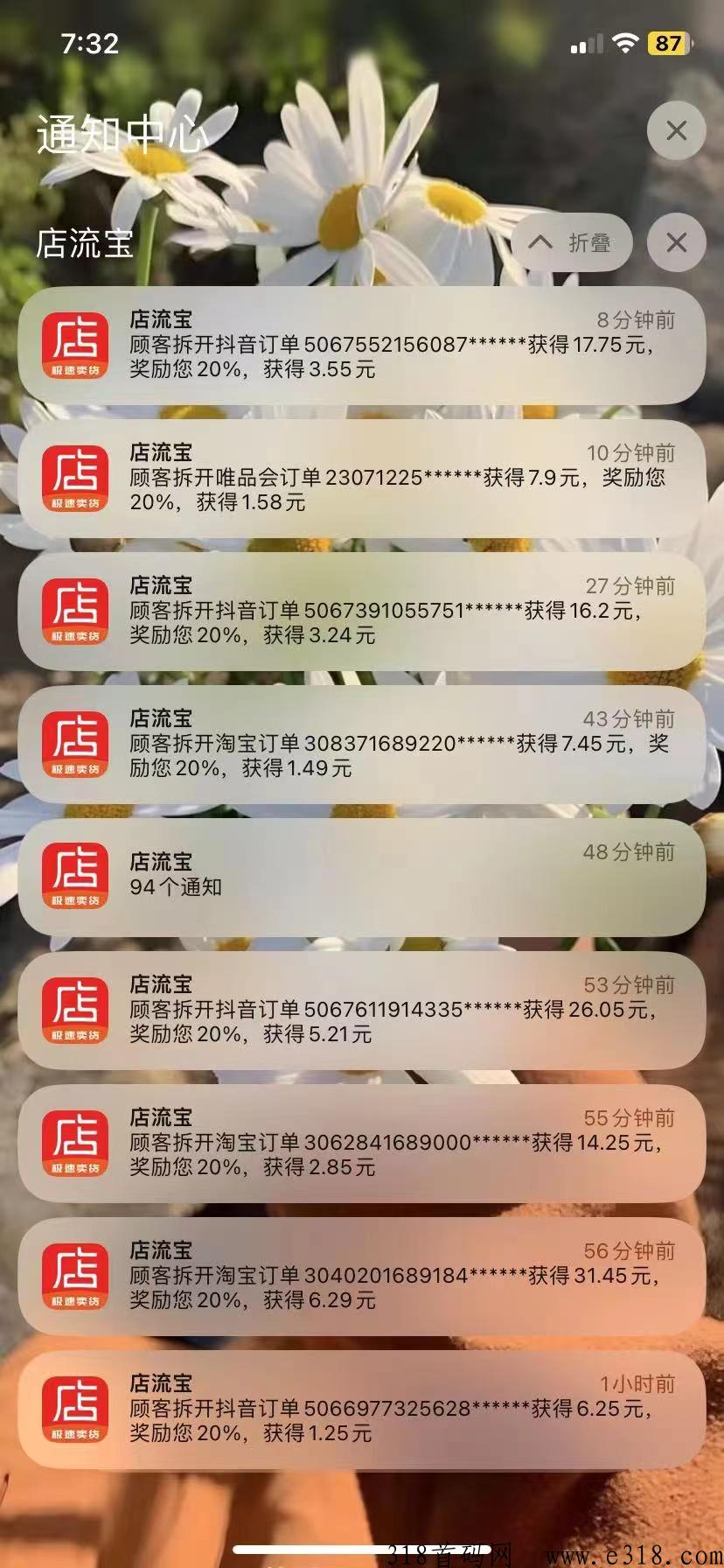 顾客通过店流宝去五大平台(淘宝 京东 抖音 拼多多 唯品会)购物下单,可以拆红包?获得返利(有网购需求的朋友可以通过店流宝购物体验下,一年网购也能省不少哦,应用商店下载店流宝,邀请码5688登录即可),同时也可以加盟成为店主,分享赚钱?。