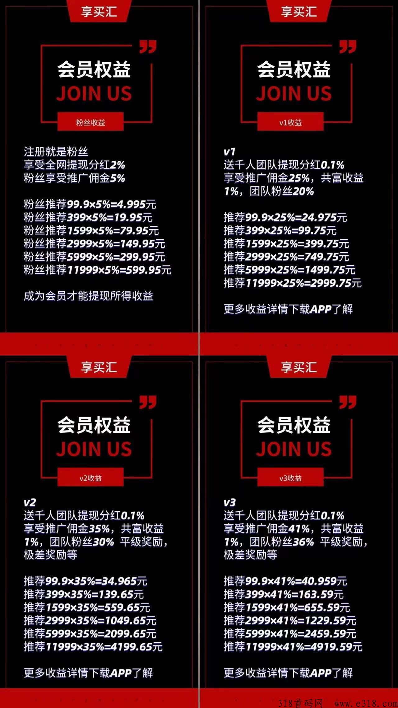 在享买汇只要你注册就有收益,这样推广起来更容易,终端用户不流失,这也是源自于公排团队提**。所以,享买汇它又是全网唯一一个不推广就有收益的平台,当然了,推广让你收益更高。下面给各网友继续分享享买汇奖励收益分配制度,供大家全面了解享买汇这个优秀平台。