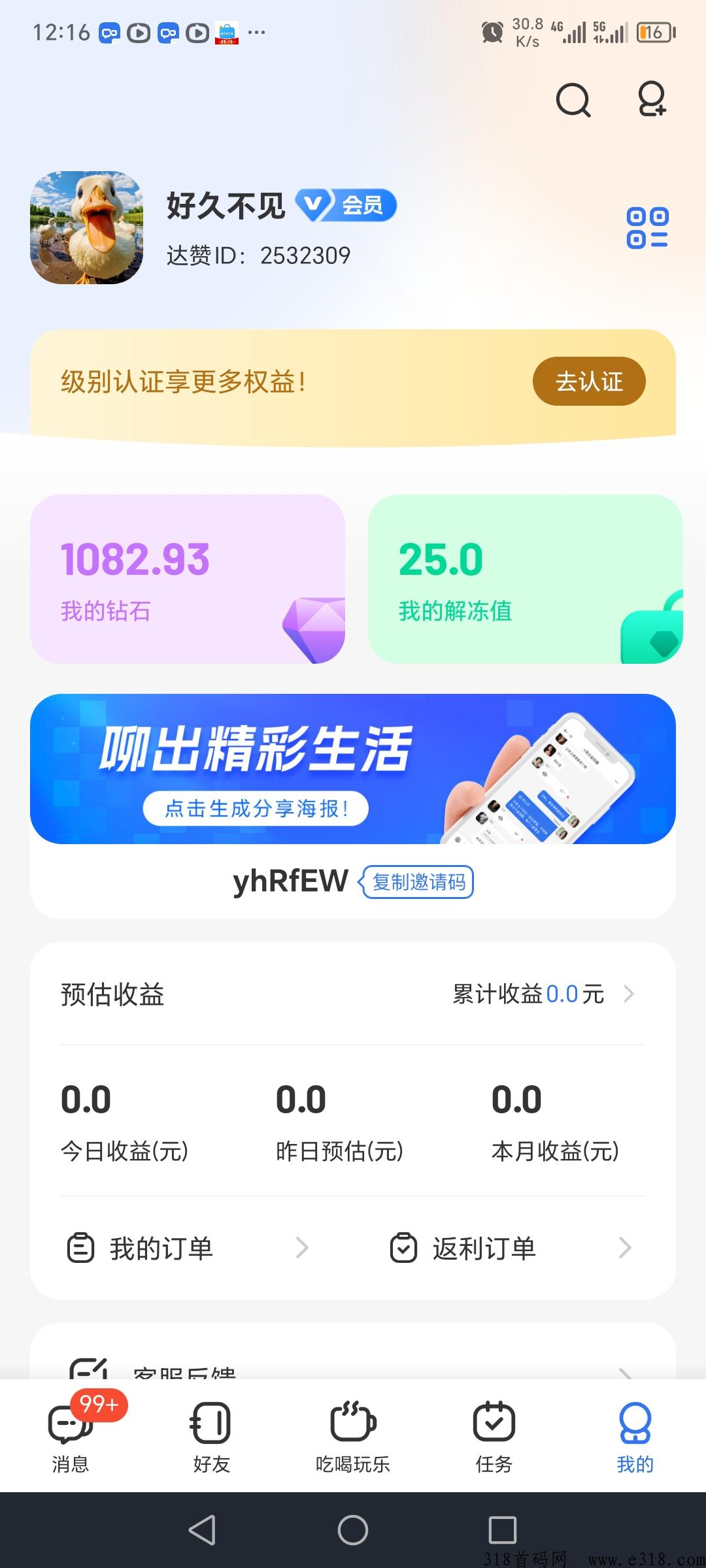【达赞】秒杀全网平台,变现快!不用复投,永不下车!注册当天就可卖得7元,266-280升级达赞会员月收益330+ 10股起卖,目前每股11.48元,可多号多撸绑同一个人收kuan账号可绑5个达赞号,每天三分钟,6个广告,天天卖天天有,若质押青铜宝满,一个号一月1000+。玩达赞天天可以看到米,重点,,,不是真心想做的别来,我这里容不下皮皮翻翻的人,反之想赚?,爱学习的人我绝对包教包会包你赚,我更喜欢大学生和懂的人来聊,容易沟通。啰里啰嗦的也别来了,达赞不是zhijingpan,今年四月份上线的,别问稳不稳达赞比我还稳,懂的就来
