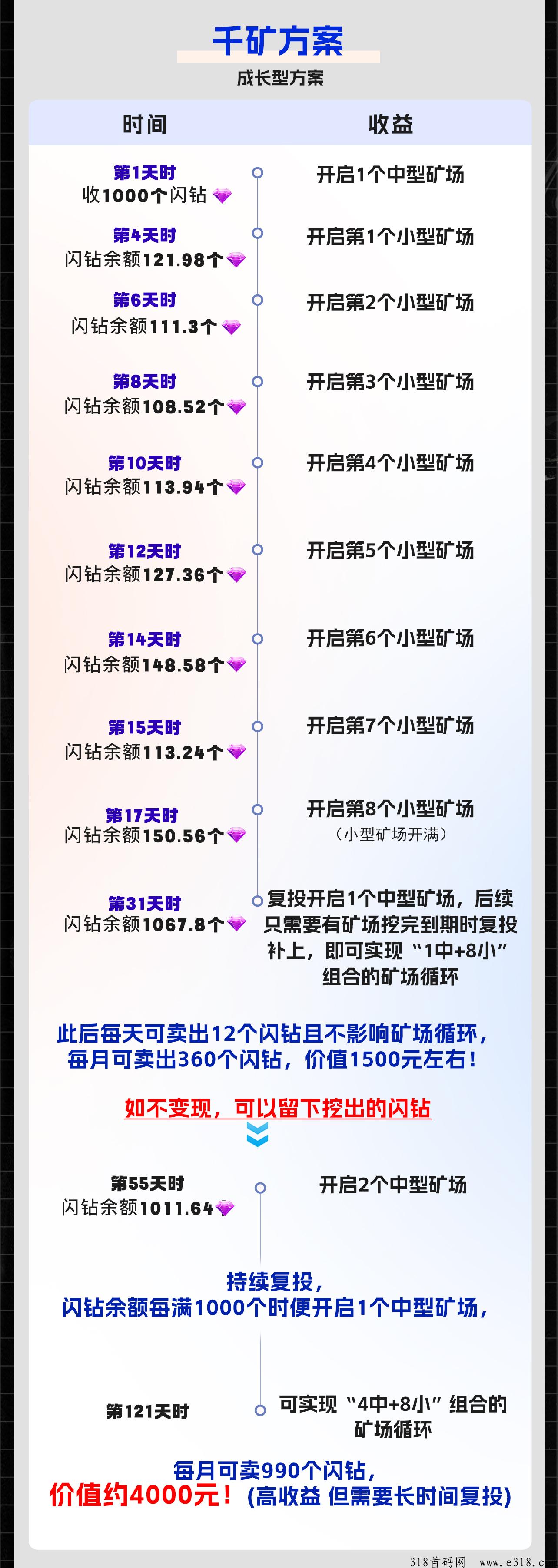 千矿方案详情(个人可开4个1000闪钻矿场)
