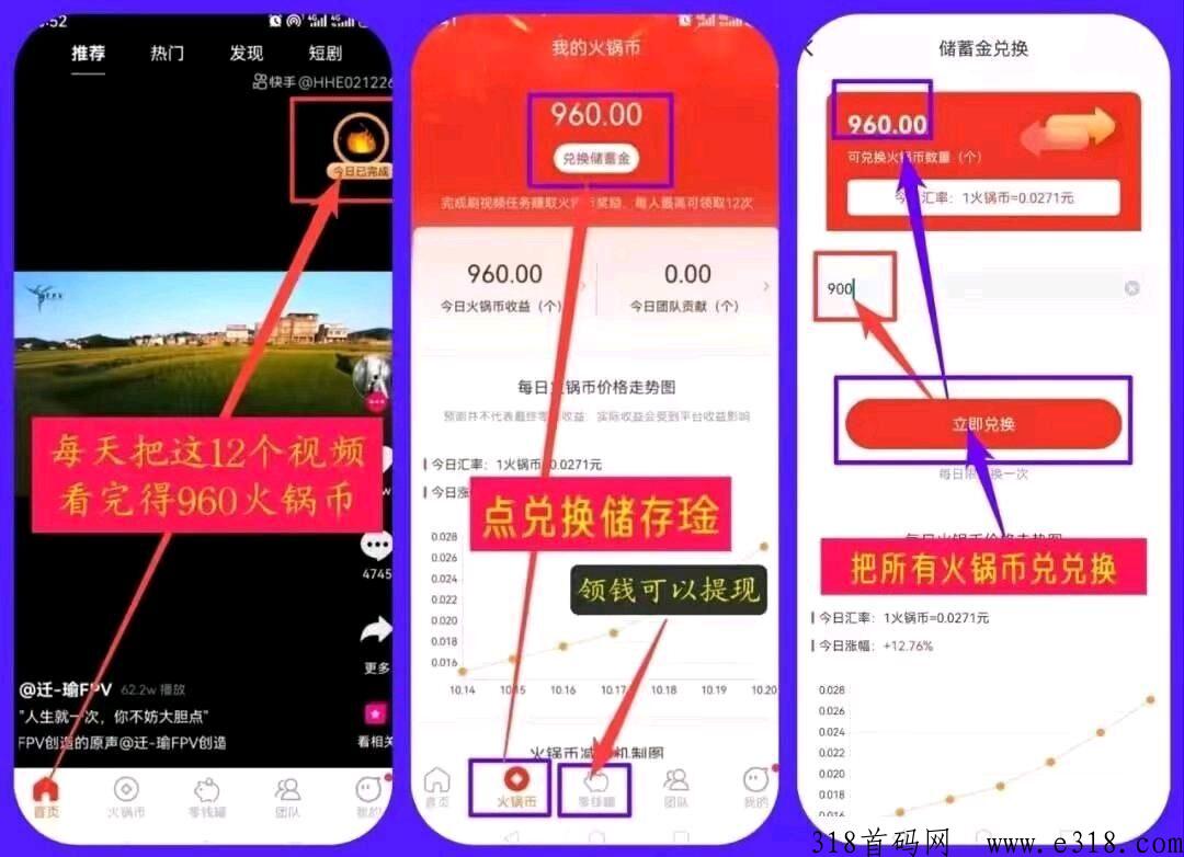 在火锅刷视频还有钱,一天刷24个视频960币!速度上车零撸,火锅币每天涨