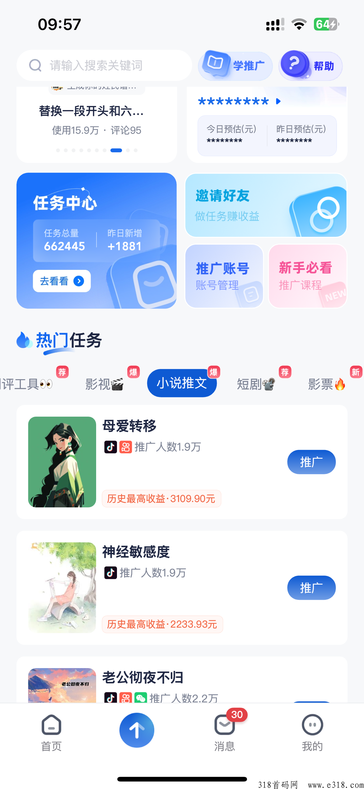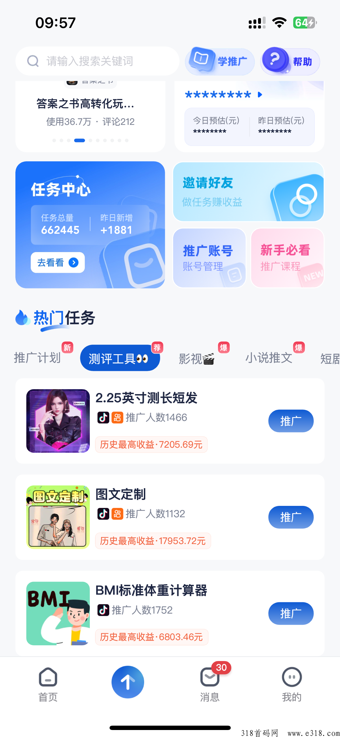 但创作猫的实际潜力在于它是一个可变现的软件,提供了许多热门任务,包括小程序测评、影视和短剧推广、小说推文、电影票推广、素材图片等。现在,它还增加了精选电商任务,提供多种商品供您选择。
