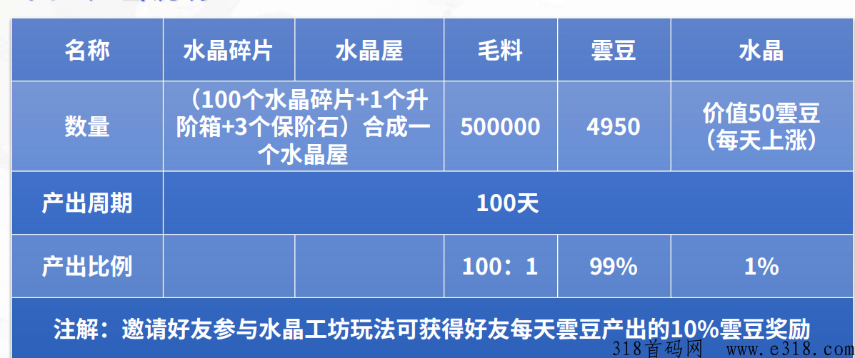水晶工坊产出说明收益说明