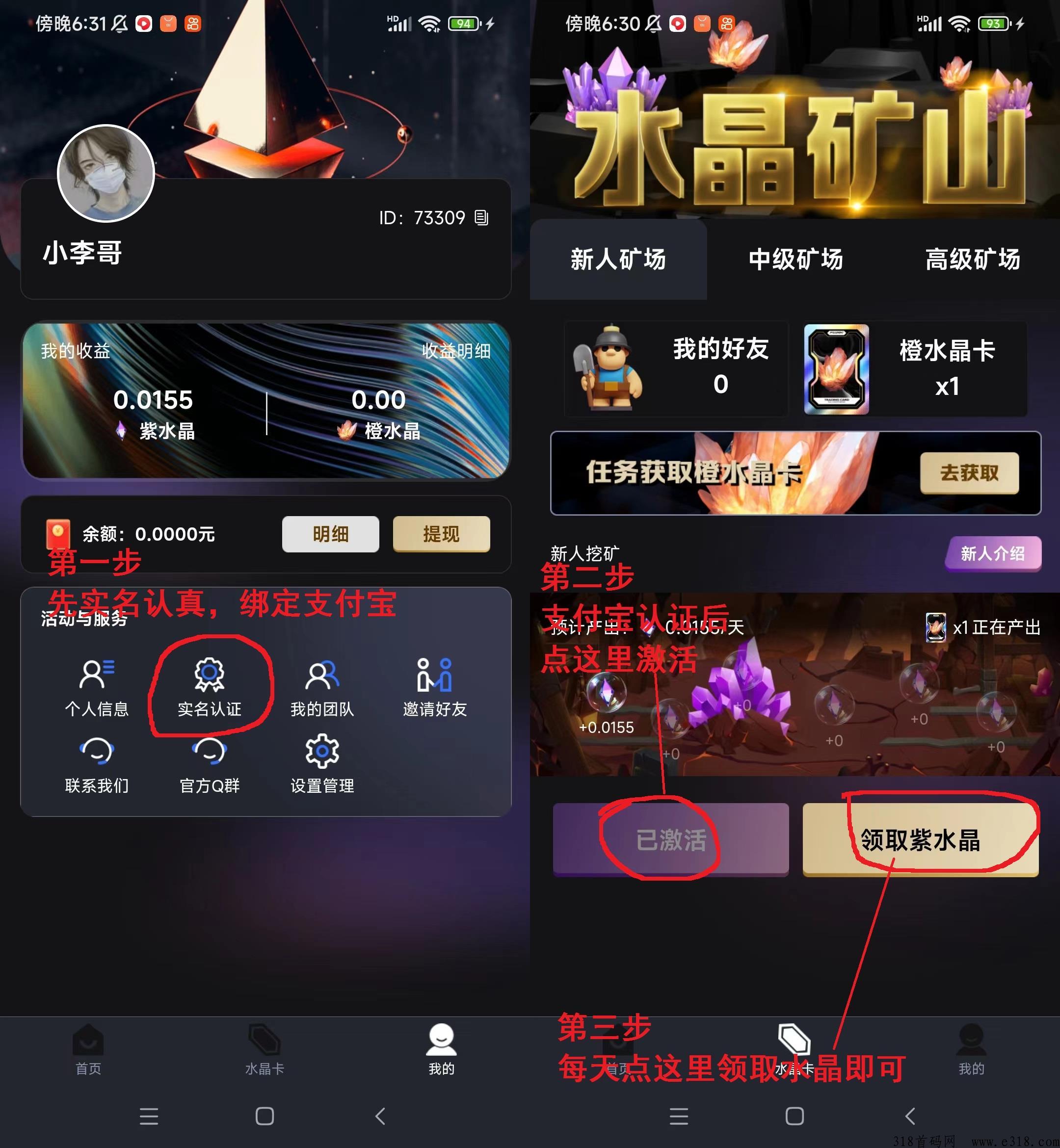 水晶卡越多,每天获得的水晶就越多,水晶在平台挂售变现,或者兑换紫水晶卡
