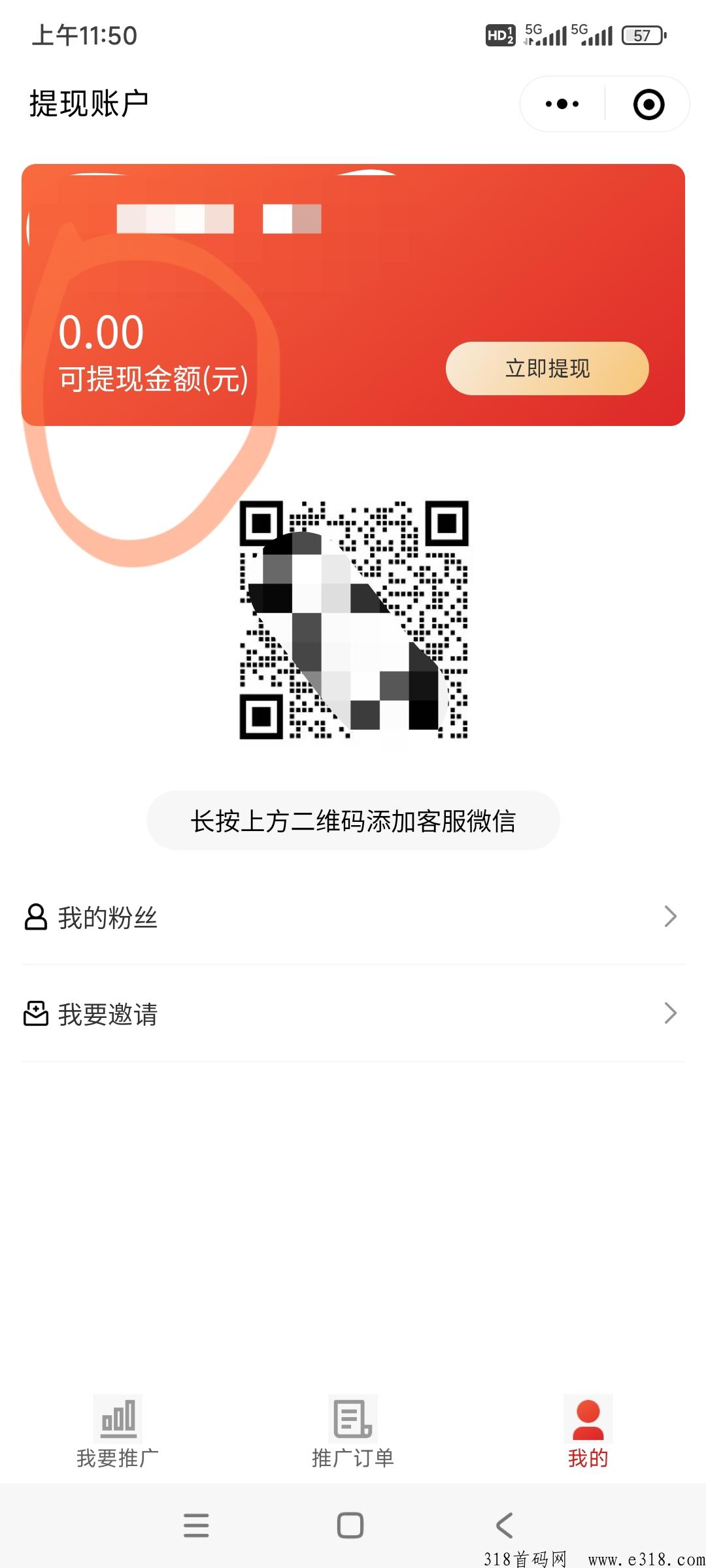 vx扫描下面的二维码,然后点击最下方的,我要推广,