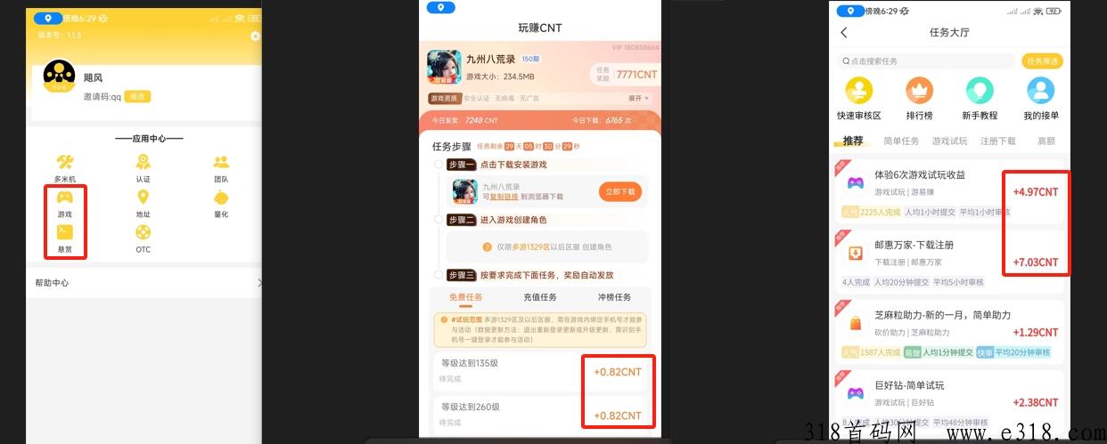 CNT 获得渠道有两个 通过做平台悬赏任务可以获得 通过试玩平台游戏可以获得。
