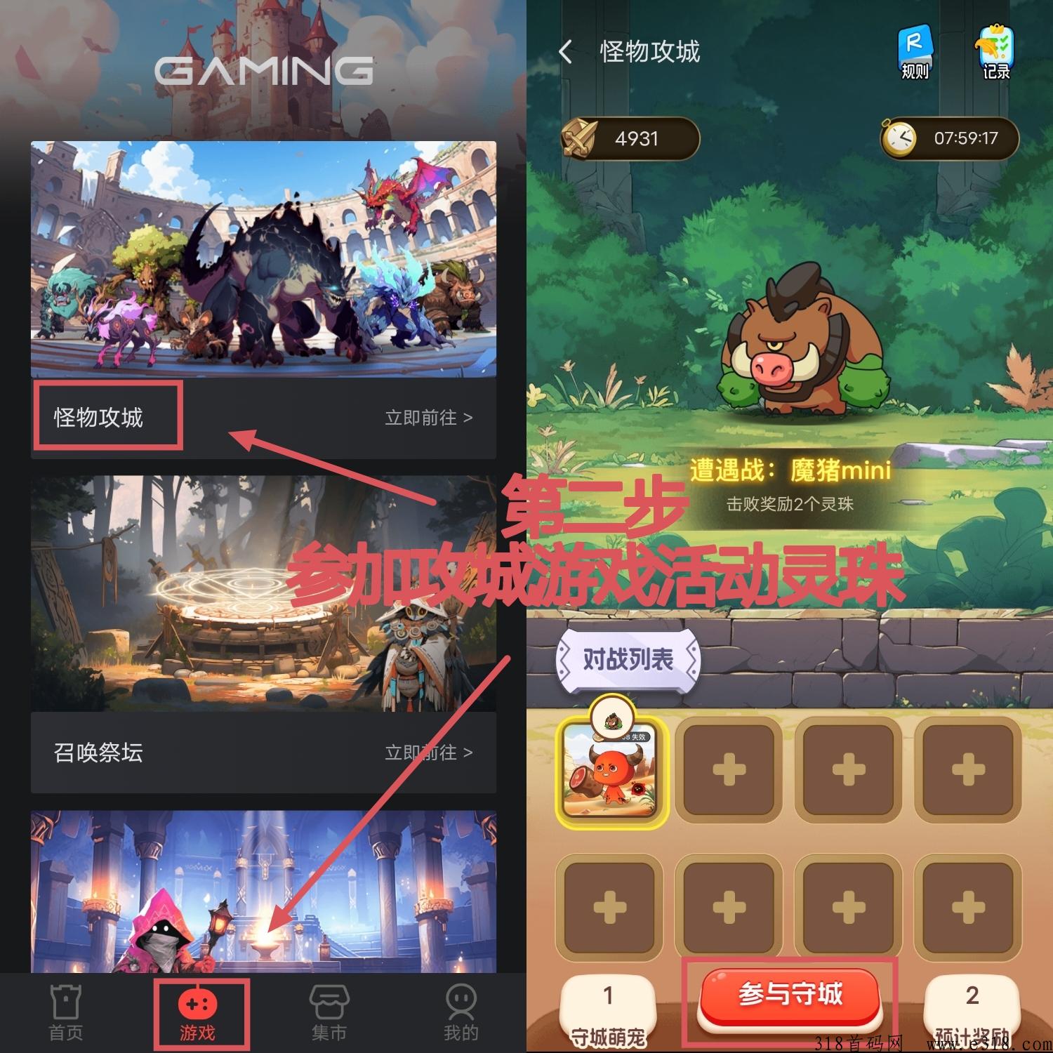 二、游戏界面:参加攻城游戏,每天可活动2-4个灵珠,在市场购买萌宠可每天获得15个左右灵珠