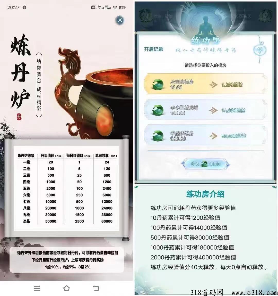 六、练功房:消耗丹药兑换经验值(40天释放完,每天0点自动释放)