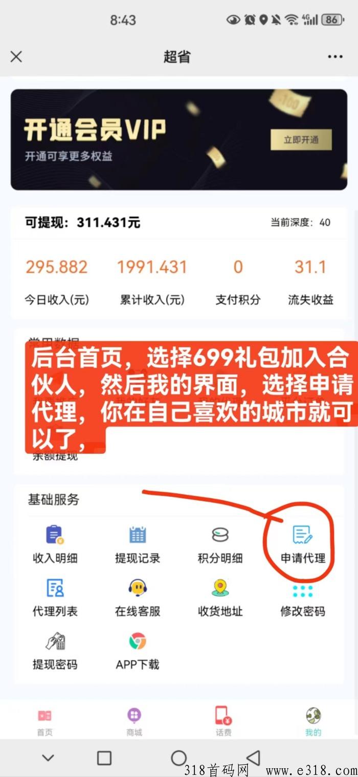 超省APP首码上线,全网首创,分段式大小公排,这个不是资金盘,54.9加入会员有产品。自己充话费93折,电费油卡,外卖,快递,打车券都有,自用省钱。