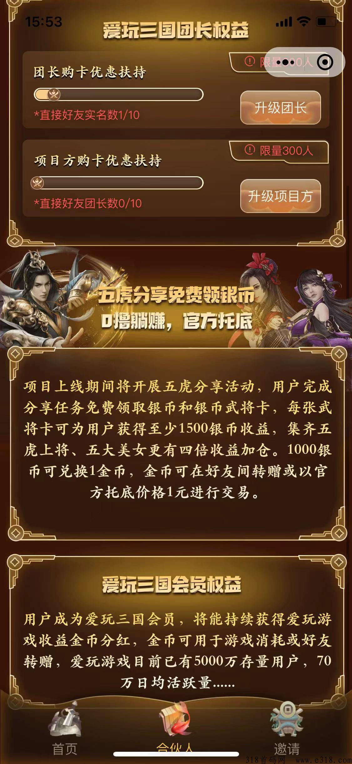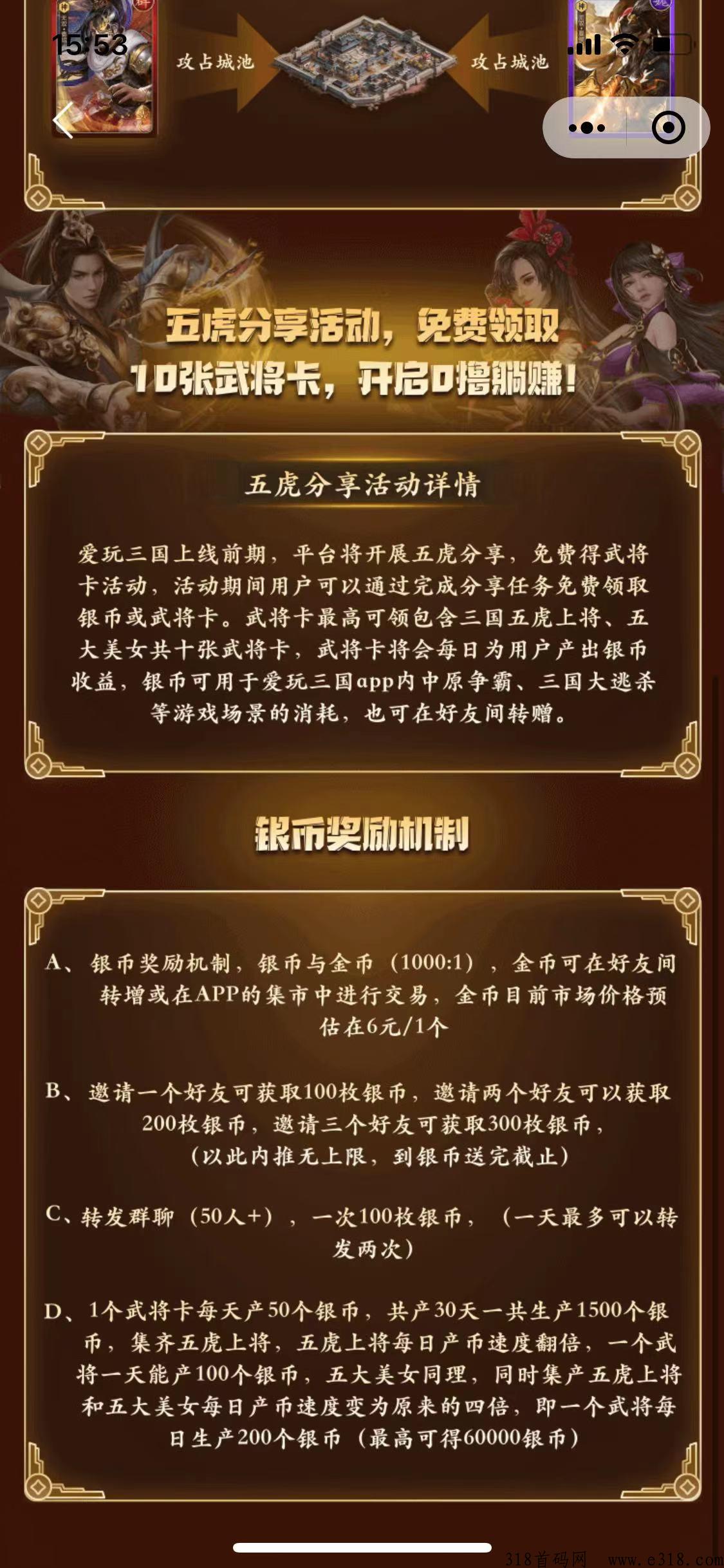可转可提官方兜底项目预热用户完成分享人物免费领取银币和武将卡