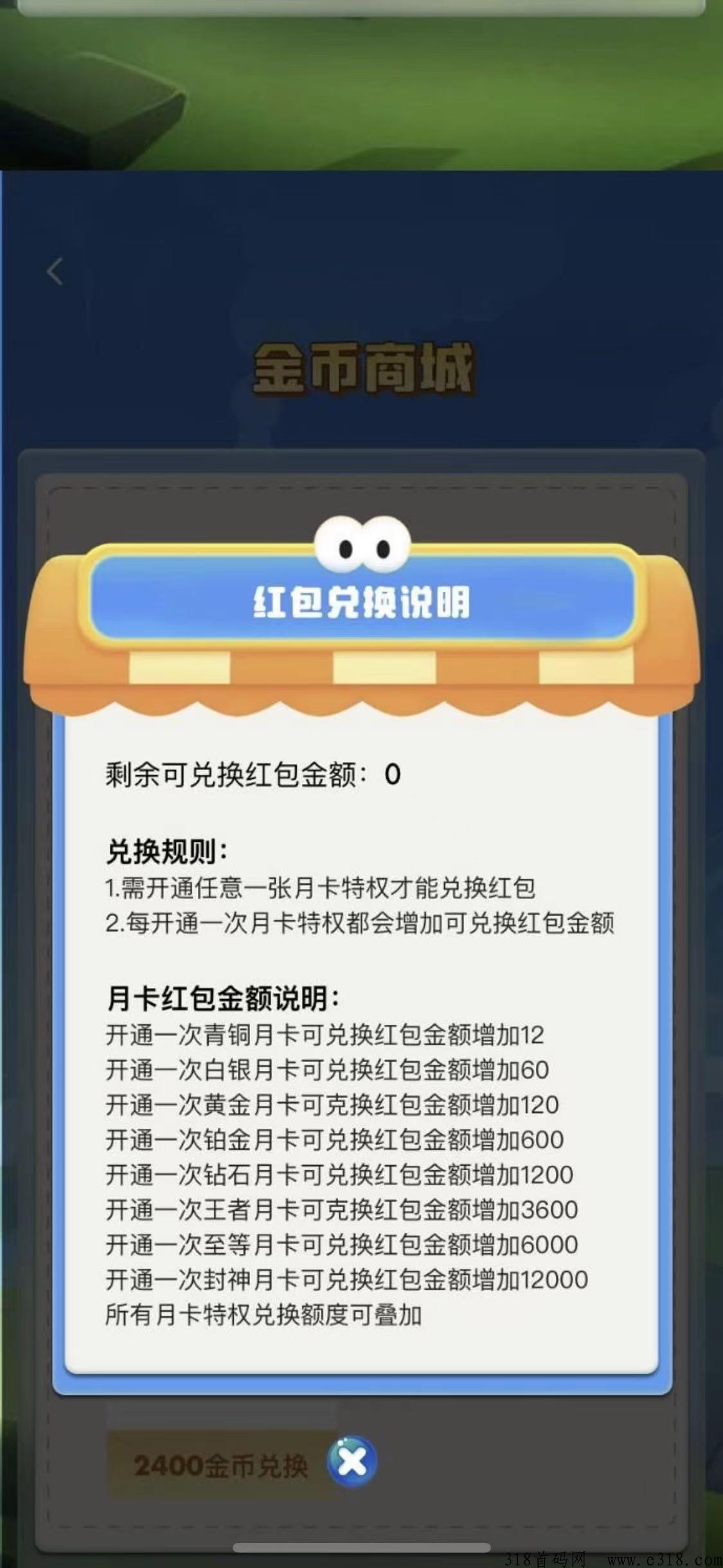 2:开通任意月卡就能兑换红包(月卡需用金币开通,详细玩法查看群文件)