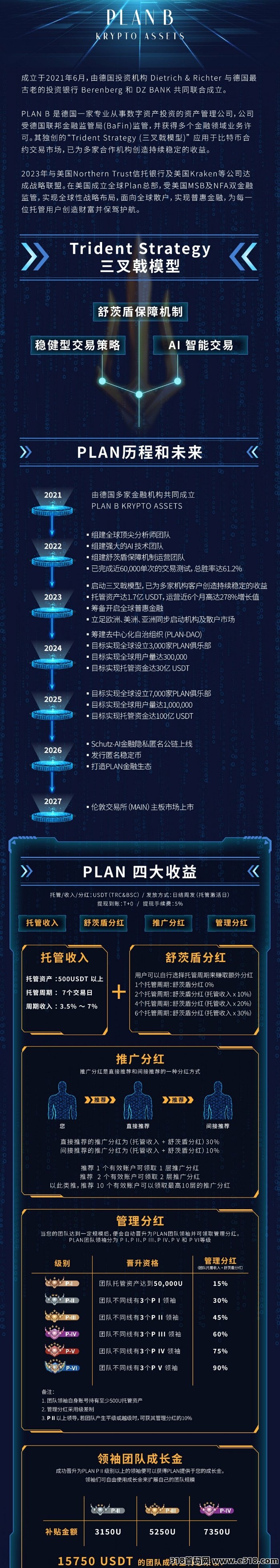 普兰PLAN B KRYPTO ASSETS成立于2021年6月由德国投资机构Dietrich & Richter与德国最古老的投资银行 Berenberg 和 DZ BANK 共同联合成立拥有全球最权威的三大金融监管业务许可执照!独创三叉戟运营模型、全球顶尖分析师团队、稳健的交易策略、强大的舒茨盾保障机制、开启全球普惠金融、打造隐私匿名公链、构建PLAN金融生态!