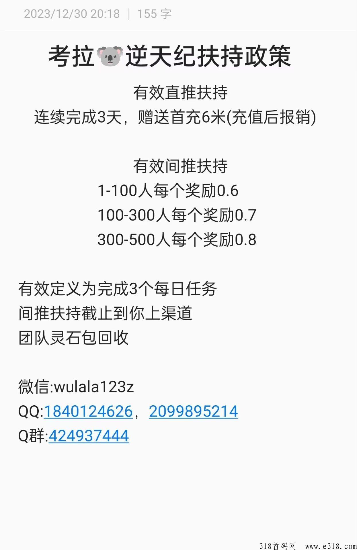跨年红利项目,全网最高扶持,不回本包赔本金,差多少补多少,首充六元免费送,错过潮玩,错过淘金,别在错过逆天纪了。