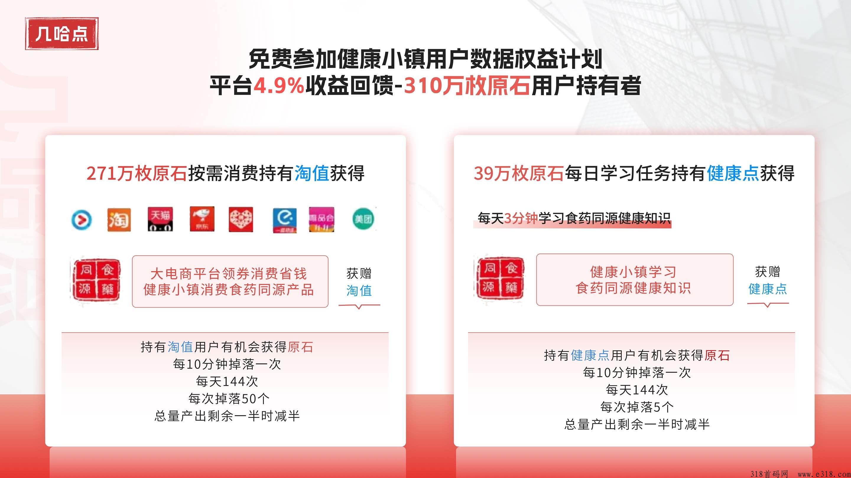 健康点:总量1000万,当产出到500万个时:计算方式全网账户流通量,达到500万个时,任务产量奖励减半