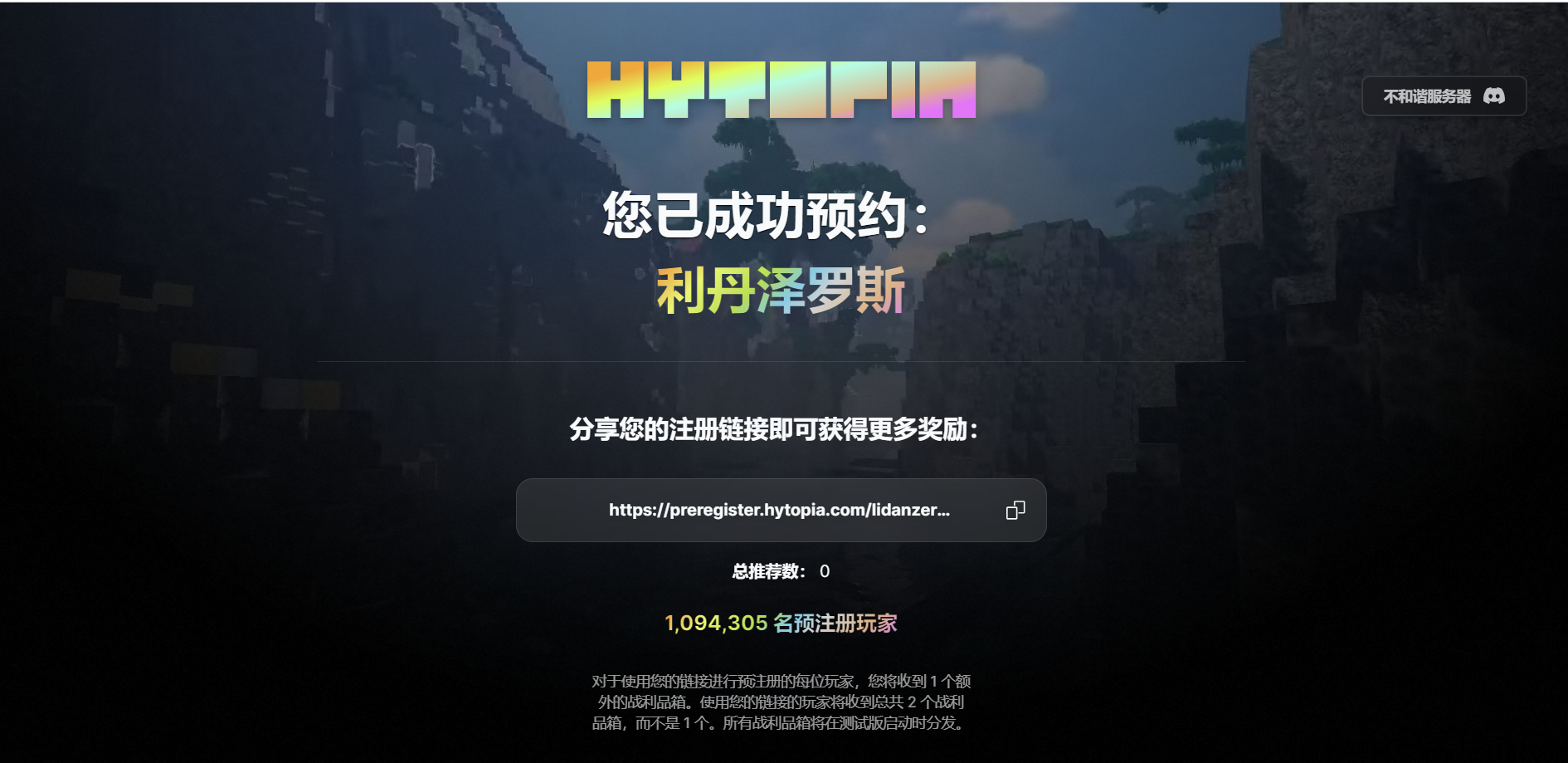 Web3版我的世界、完成预约注册后会得到一个邀请链接以此获得更多礼品赠送!
