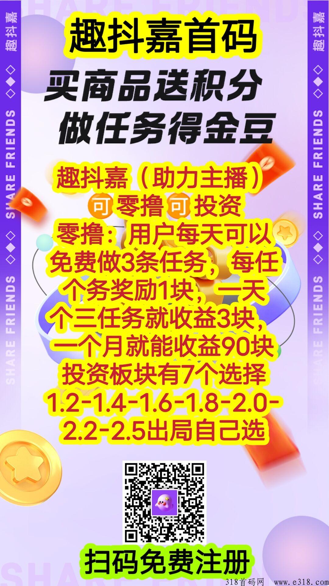 趣抖嘉,零撸月撸90米,动态无上限,2024王炸项目来袭。