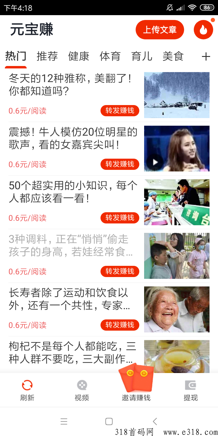 1.元宝赚转发阅读的文章转发单价还是0.6元起,大家可放心试