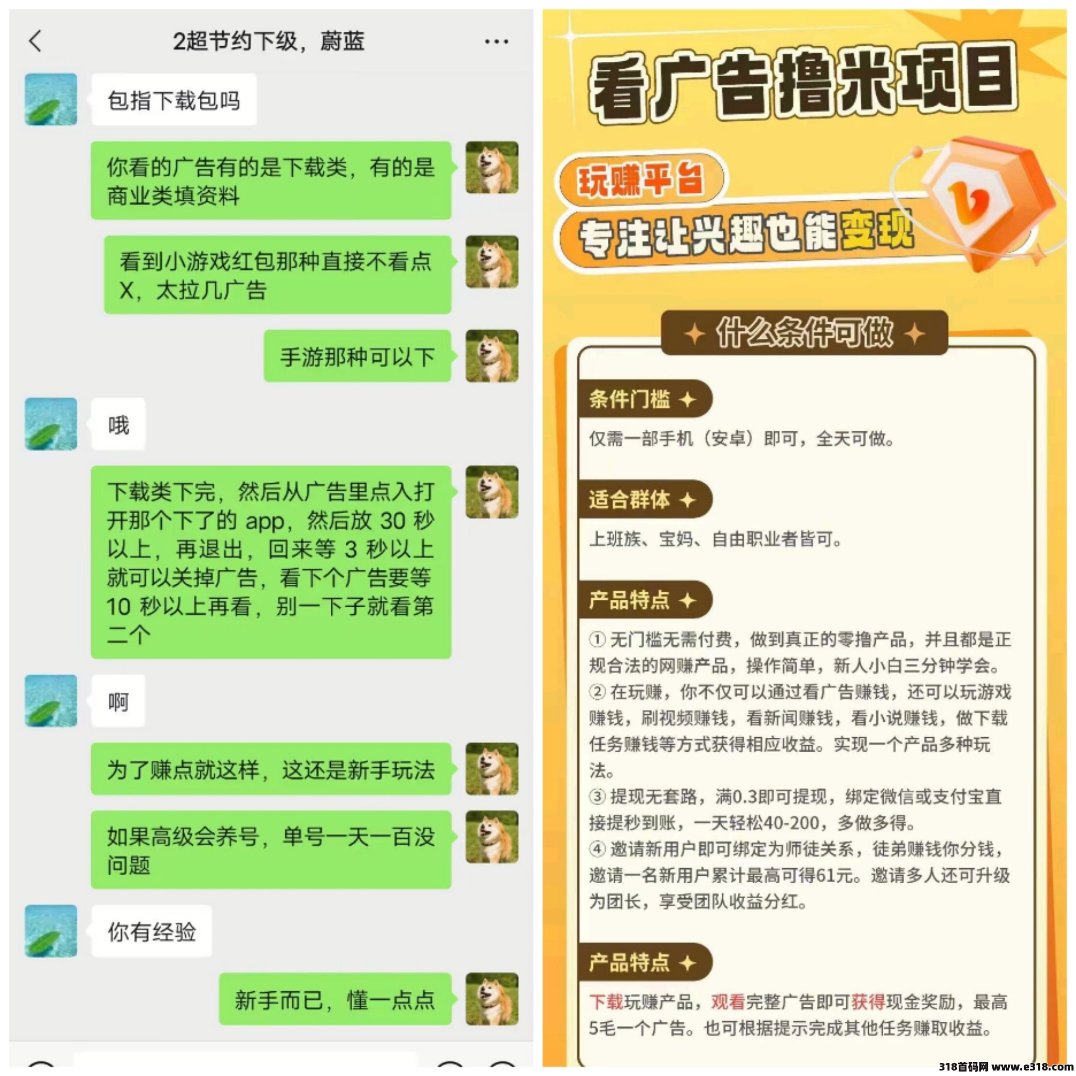 纯零撸纯看广告,看广告0.1~0.5一个随便看,就是这么暴力!直推10%