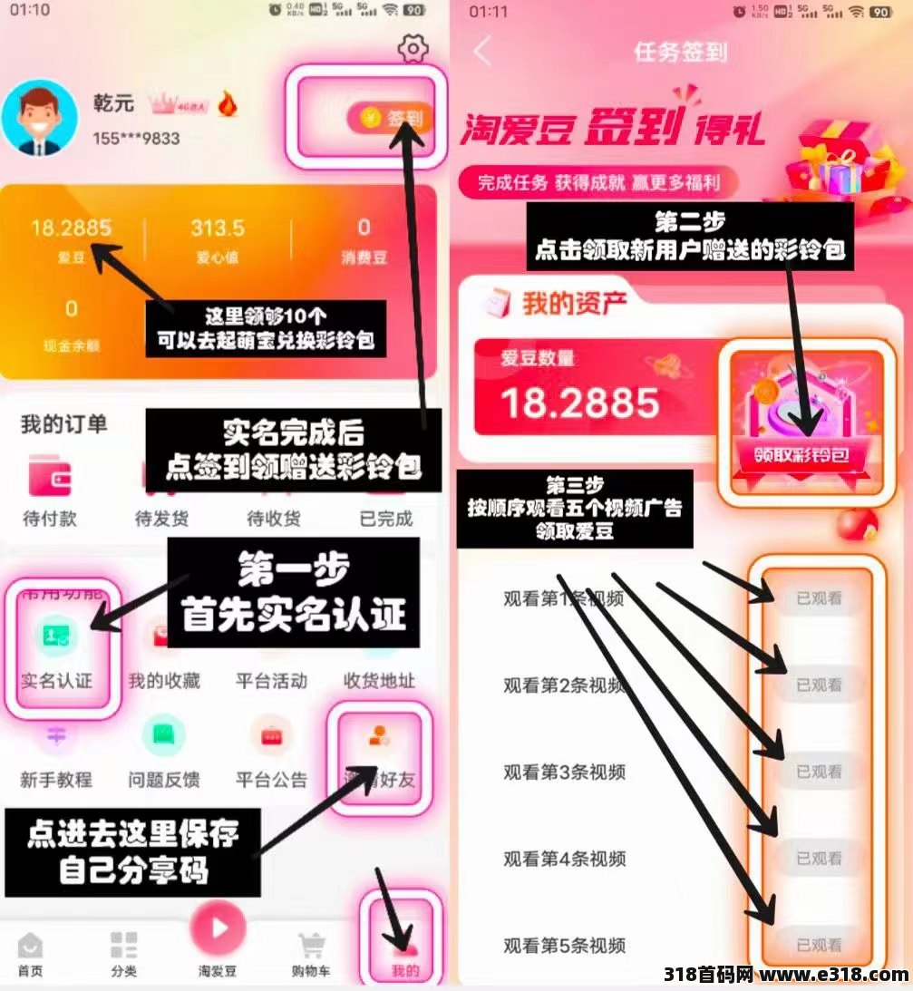 淘爱豆每天看5个广告,