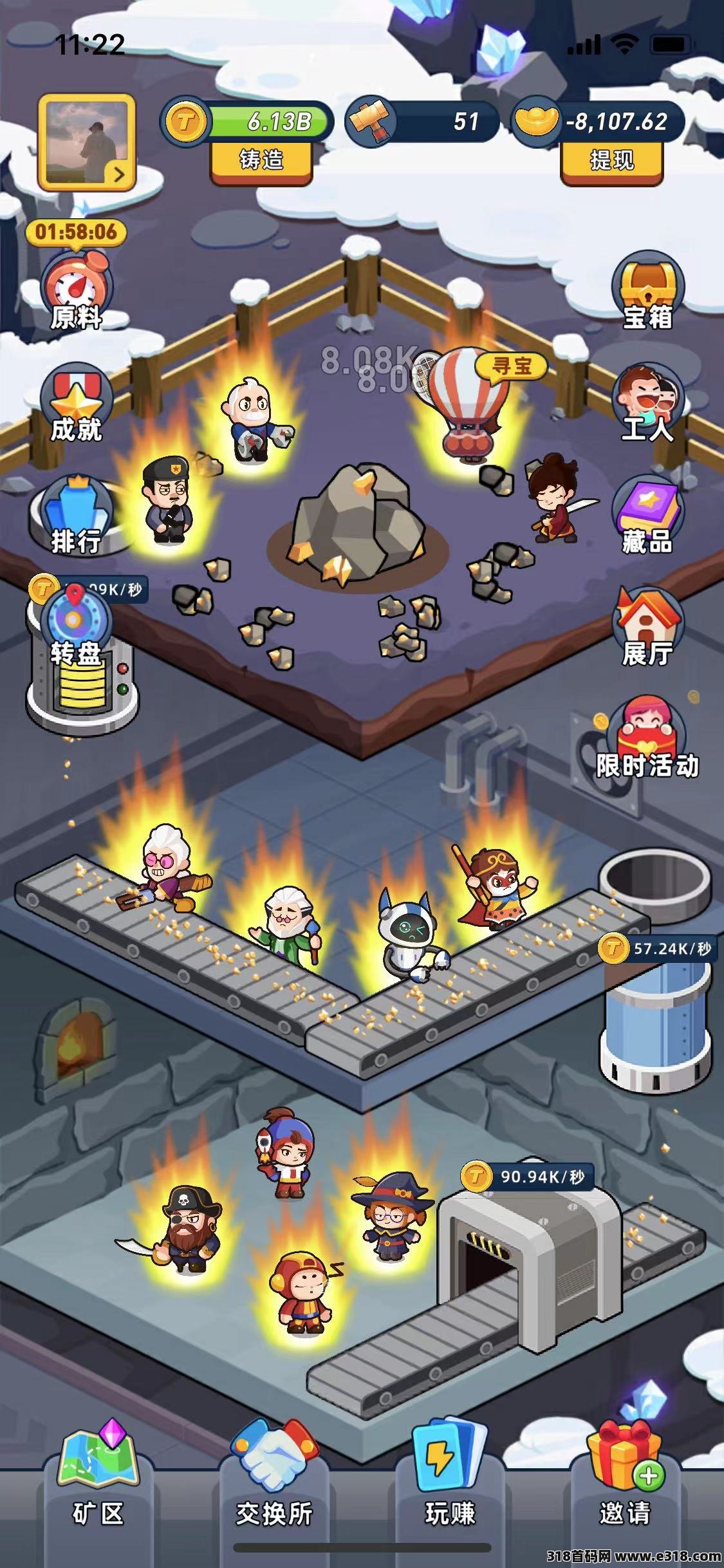 《淘⾦城镇》是兆纳科技于2023年8月底全新推出的款赚+模拟经营类⼿游,结合当下最热门的大逃杀,自创原石争霸赛、运动会、幸运专机等一系列消耗性小游戏,热度也是只增不减!在游戏中,玩家经营⼀个矿场,可通过不断升级各⽣产线的员来提整体产出并赚取现金奖励。