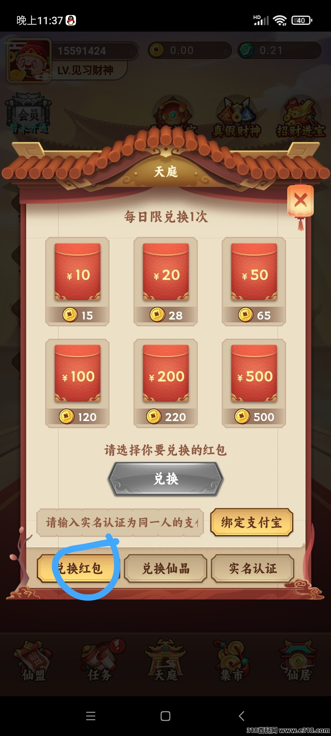 实名后,如果有了铜钱,就可以把铜钱兑换到支付宝了。