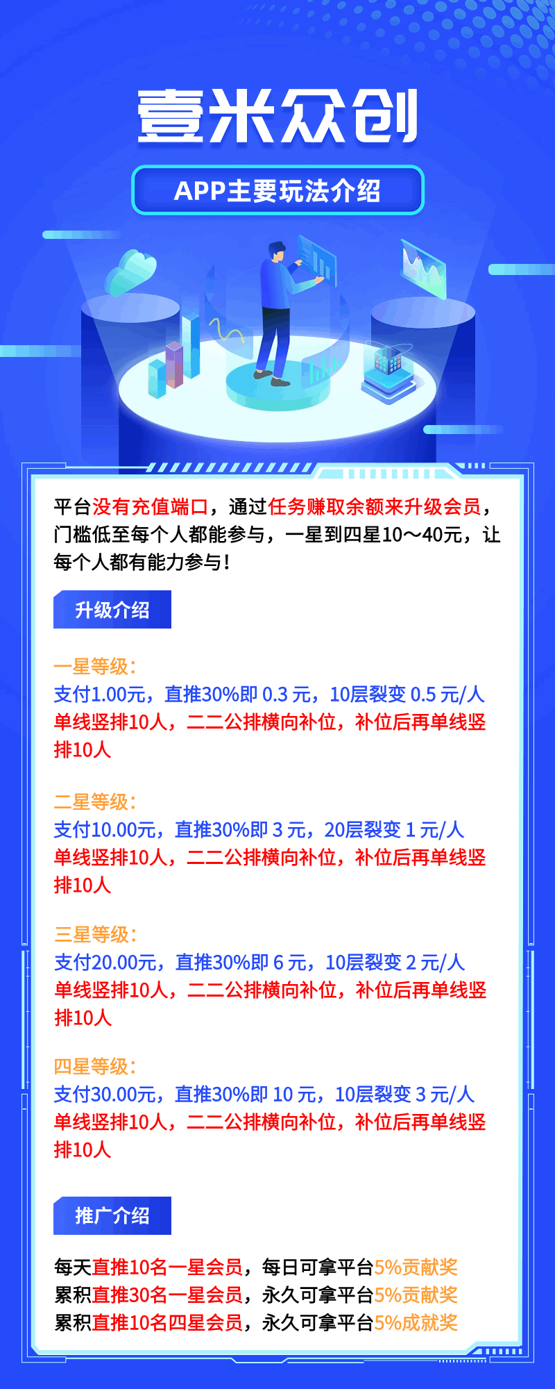 壹米众创,一款零撸项目,看广告自动落滑,多层收益,直推30%,更多收益请下载了解
