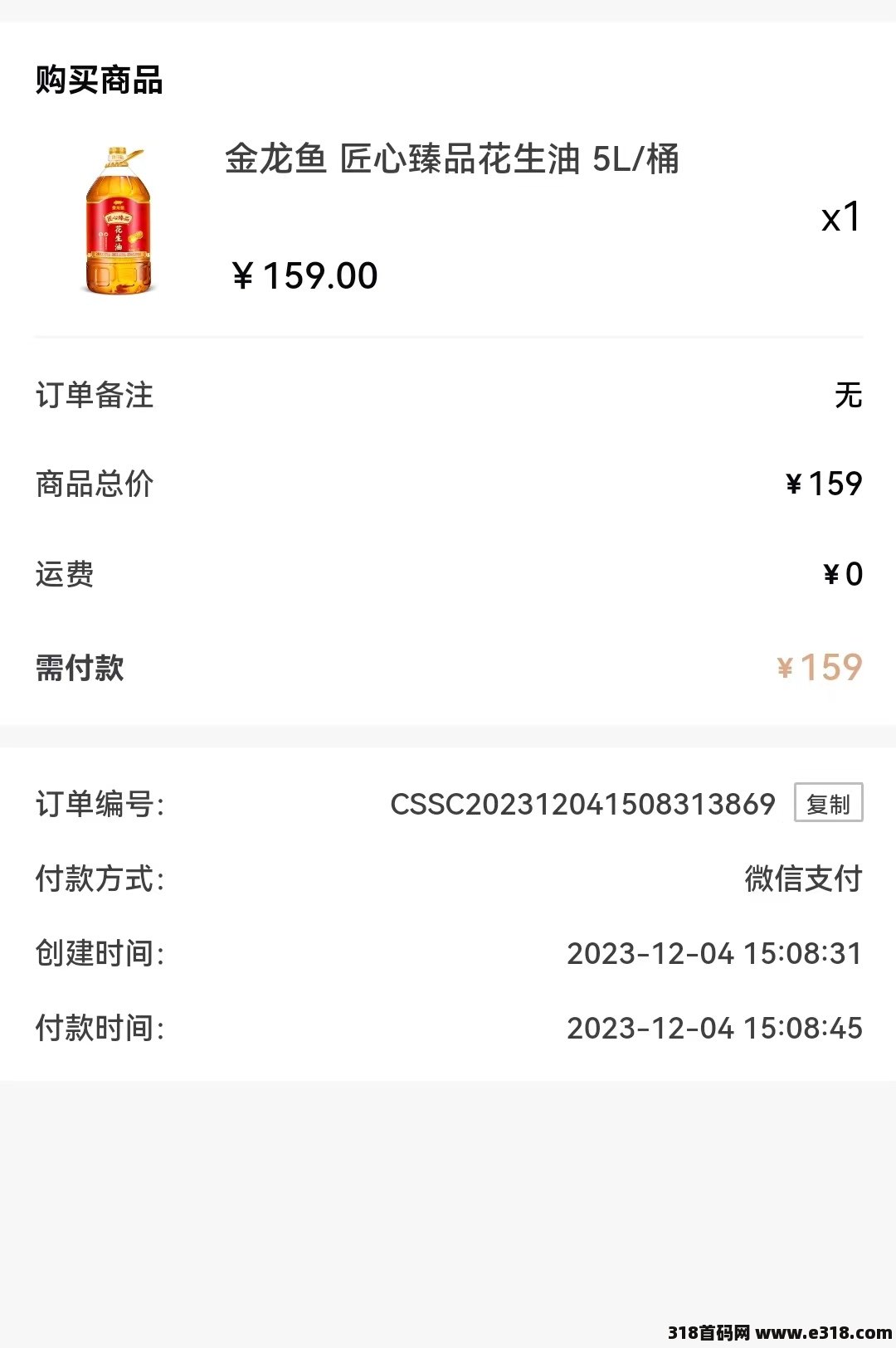 例如金龙鱼匠心臻品5L花生油,平台价格159,淘宝店价格159,京东店156,价格一样,送一千多积分,每日芬,还有其它产品,包括